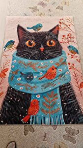 Atkılı Kedi ve Serçe Kuşları Desenli Yıkanabilir Kaymaz Taban Leke Tutmaz Çocuk Odası Halısı Atkılı Kedi ve Serçe Kuşları Desenli Yıkanabilir Kaymaz Taban Leke Tutmaz Çocuk Odası Halısı PNHC18 160 x 230