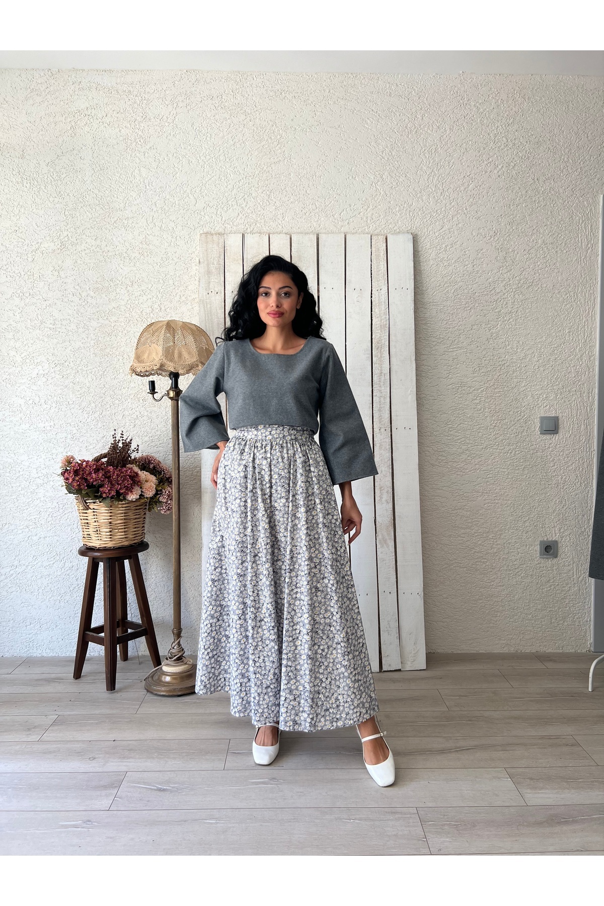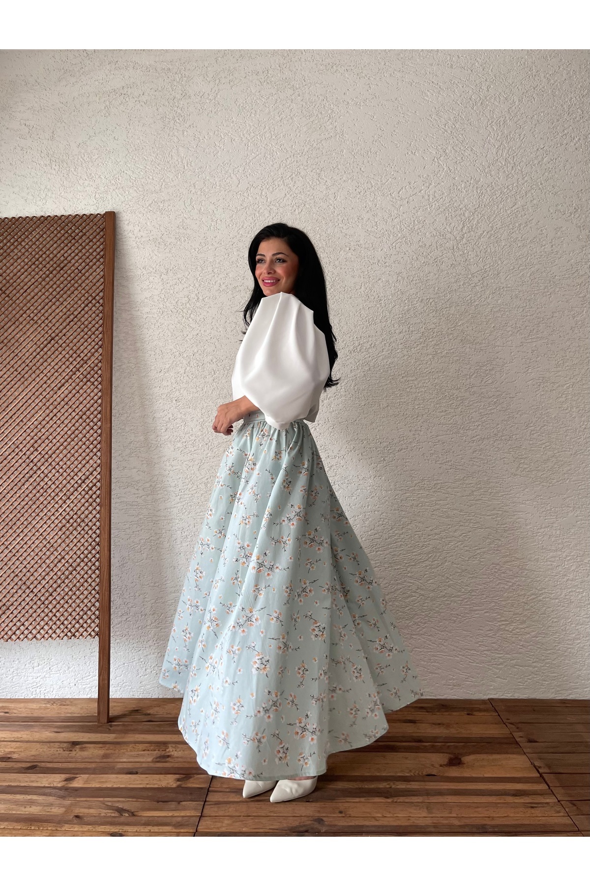 Su Yeşili Bahardalı Poplin Kloş Etek Su Yeşili Bahardalı Poplin Kloş Etek KCGM12098 L/XL