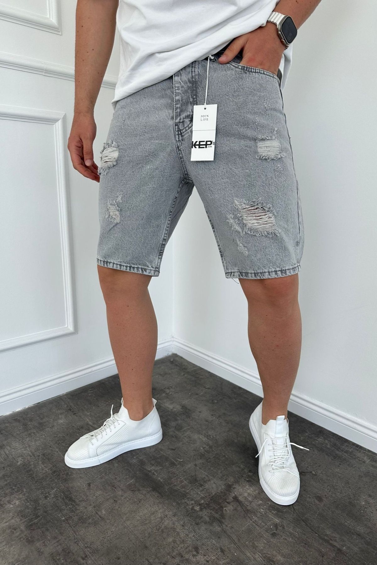 Erkek Yırtık Detaylı Mavi Jean Kot Şort Erkek Yırtık Detaylı Mavi Jean Kot Şort KE-508 36