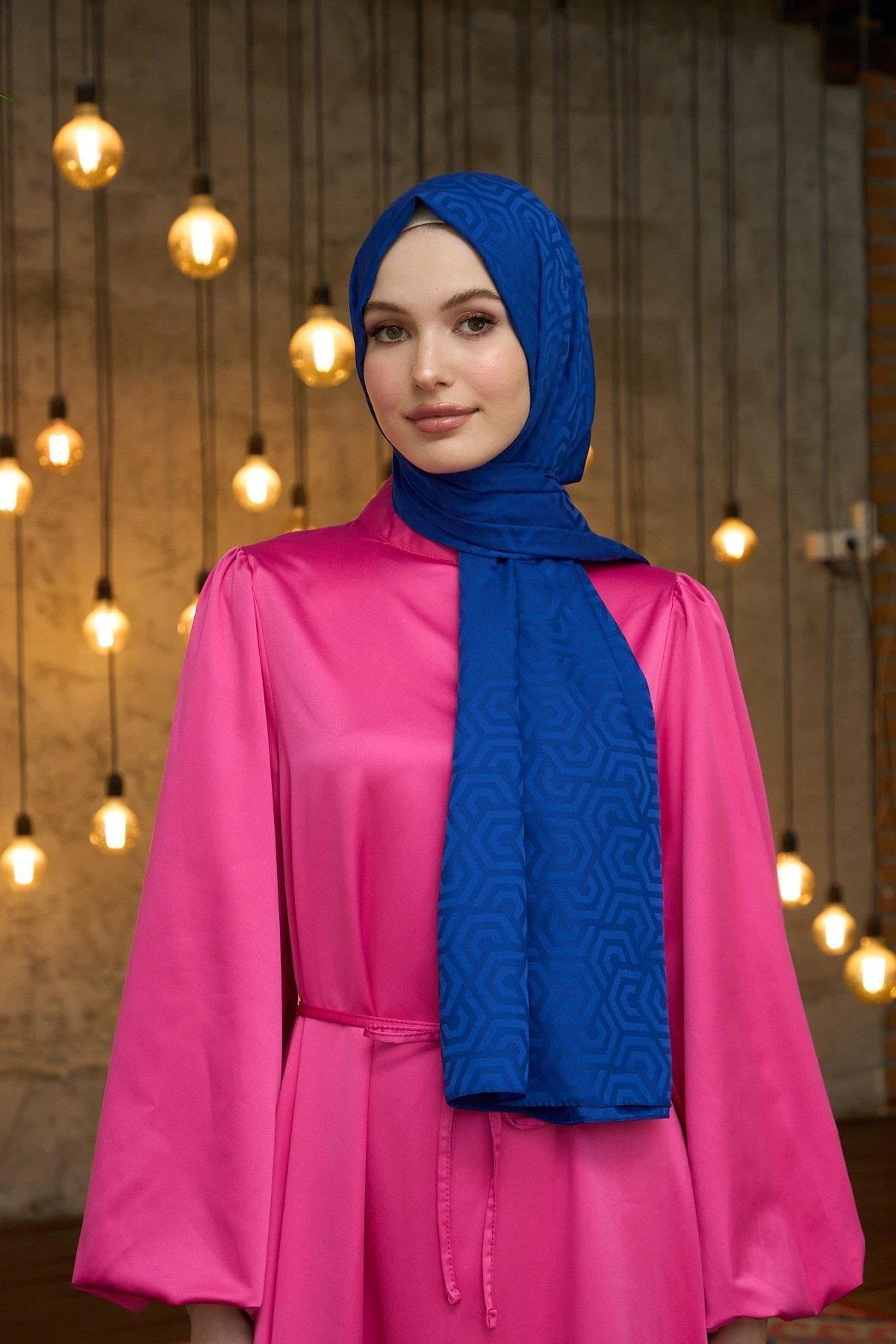 Yaz Işıltısı Koleksiyonu İpeksi Jakar Şal İndigo Mavi 9013-21 Yaz Işıltısı Koleksiyonu İpeksi Jakar Şal İndigo Mavi 9013-21 80 x 190