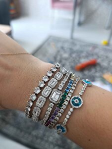 925 Ayar Gümüş Beyaz Baget Taşlı Bileklik 925 Ayar Gümüş Beyaz Baget Taşlı Bileklik sa-5546 20 cm