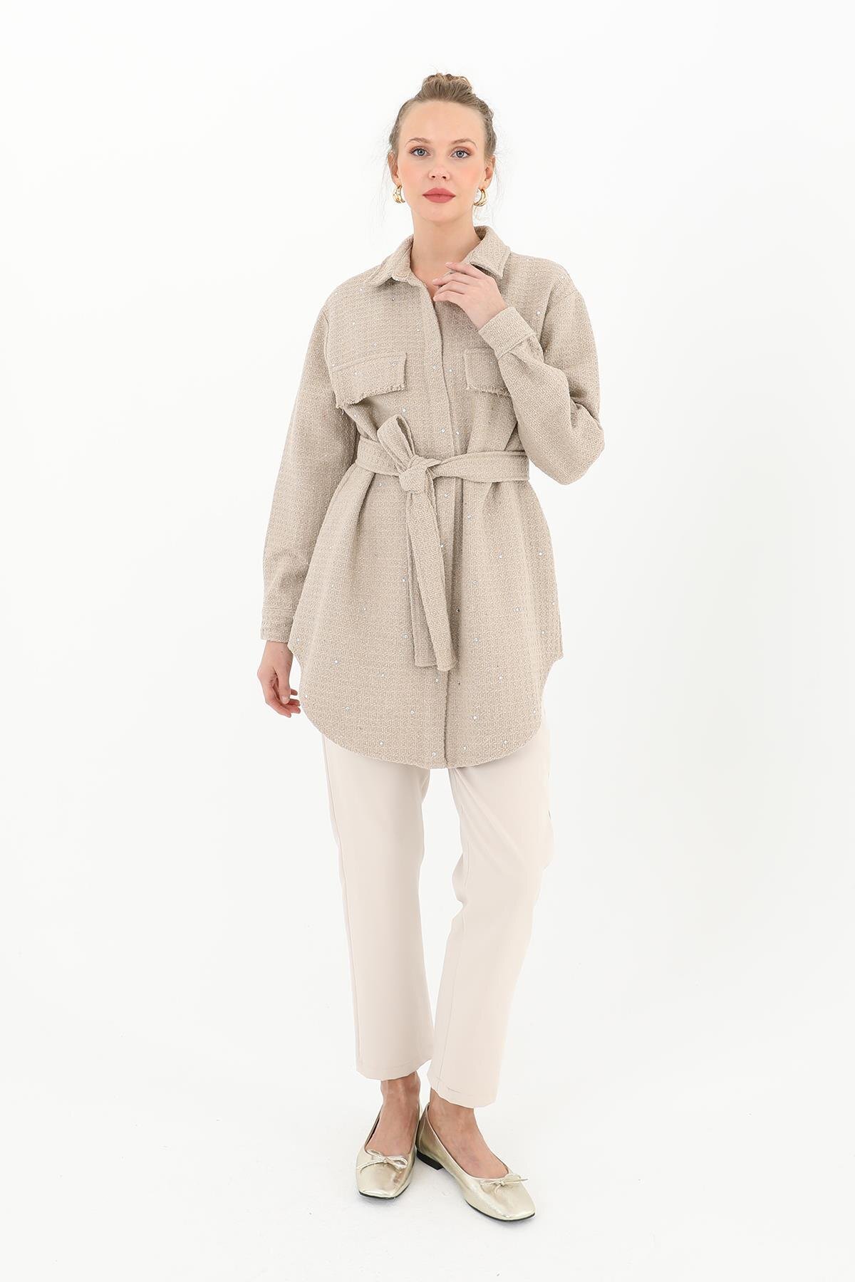 مشخصات فنی Ayarlanabilir Lastik Detaylı Keten Ceket