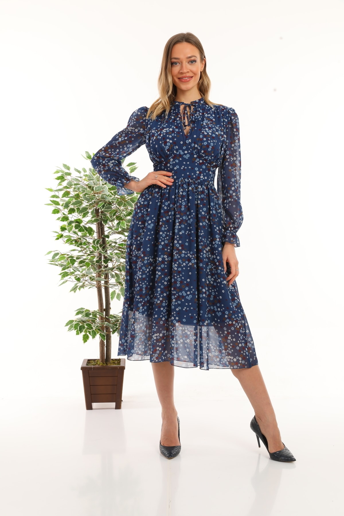 Bisiklet Yaka Uzun Kollu Şifon Elbise ELBİSE 611EL303 Bisiklet Yaka Uzun Kollu Şifon Elbise ELBİSE 611EL303 XL
