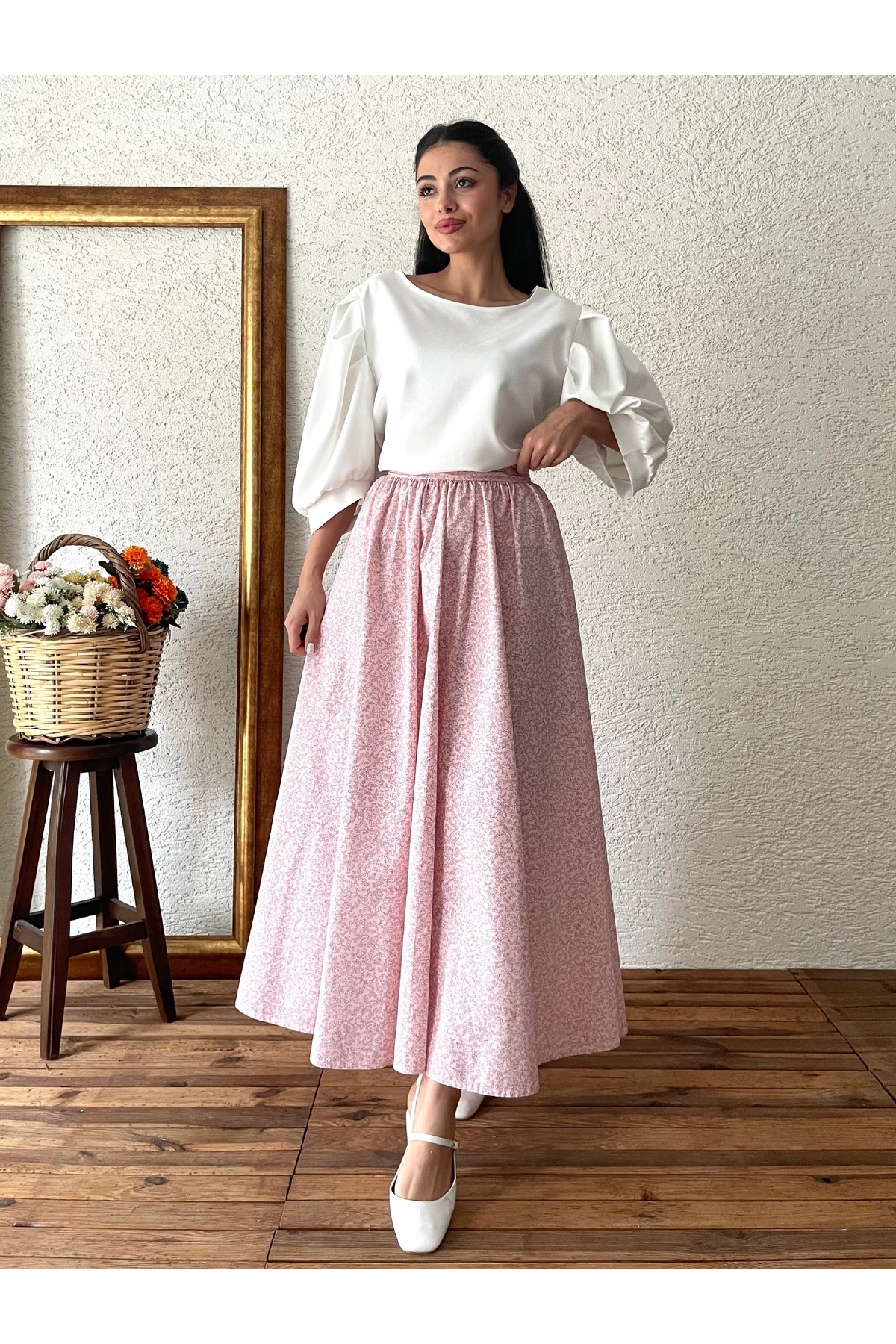 Toz Pembe Çıtır Poplin Kloş Etek Toz Pembe Çıtır Poplin Kloş Etek KCGM12098 L/XL