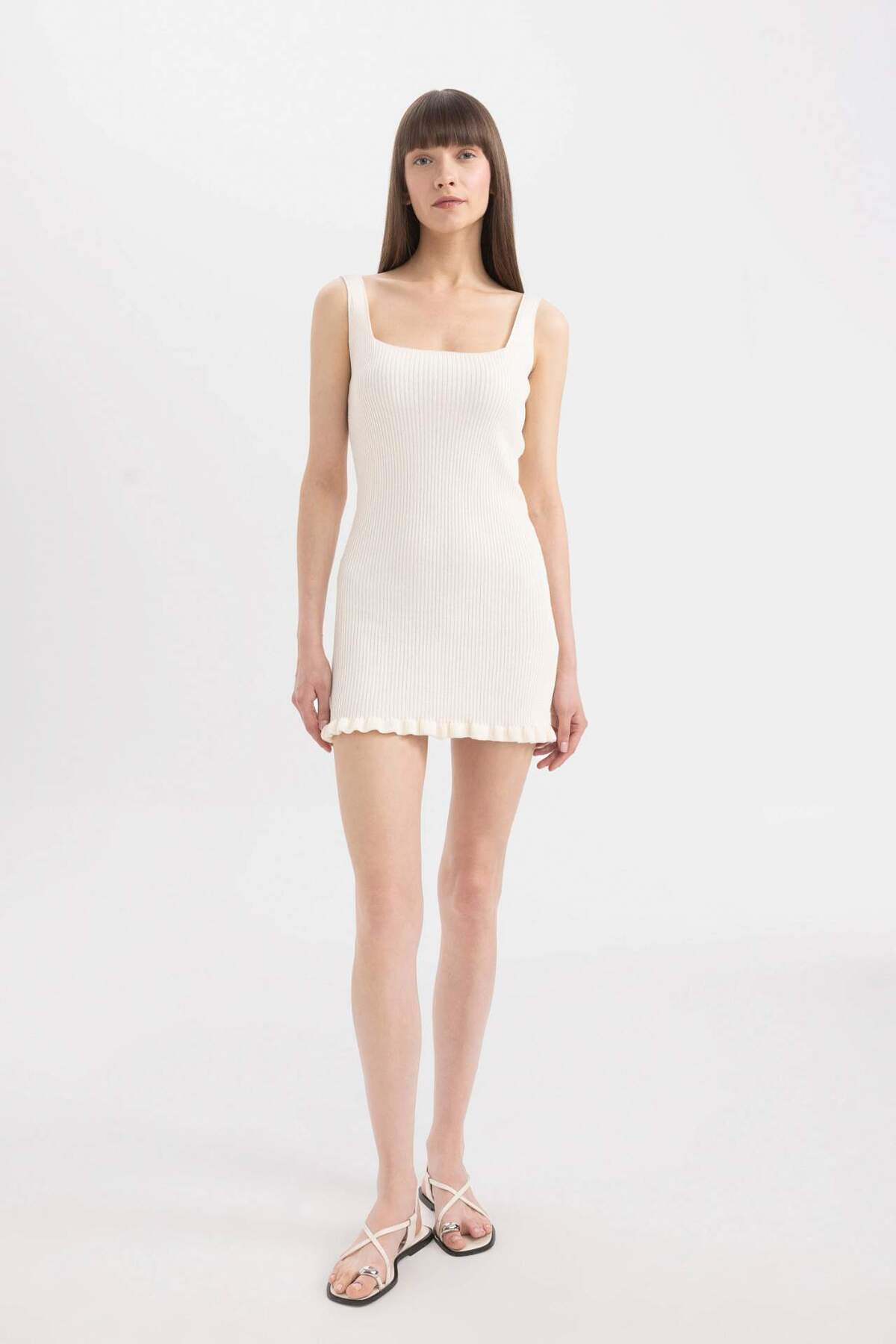 Fitted Kare Yaka Kolsuz Mini Triko Elbise D3001AX24SM Fitted Kare Yaka Kolsuz Mini Triko Elbise D3001AX24SM XL