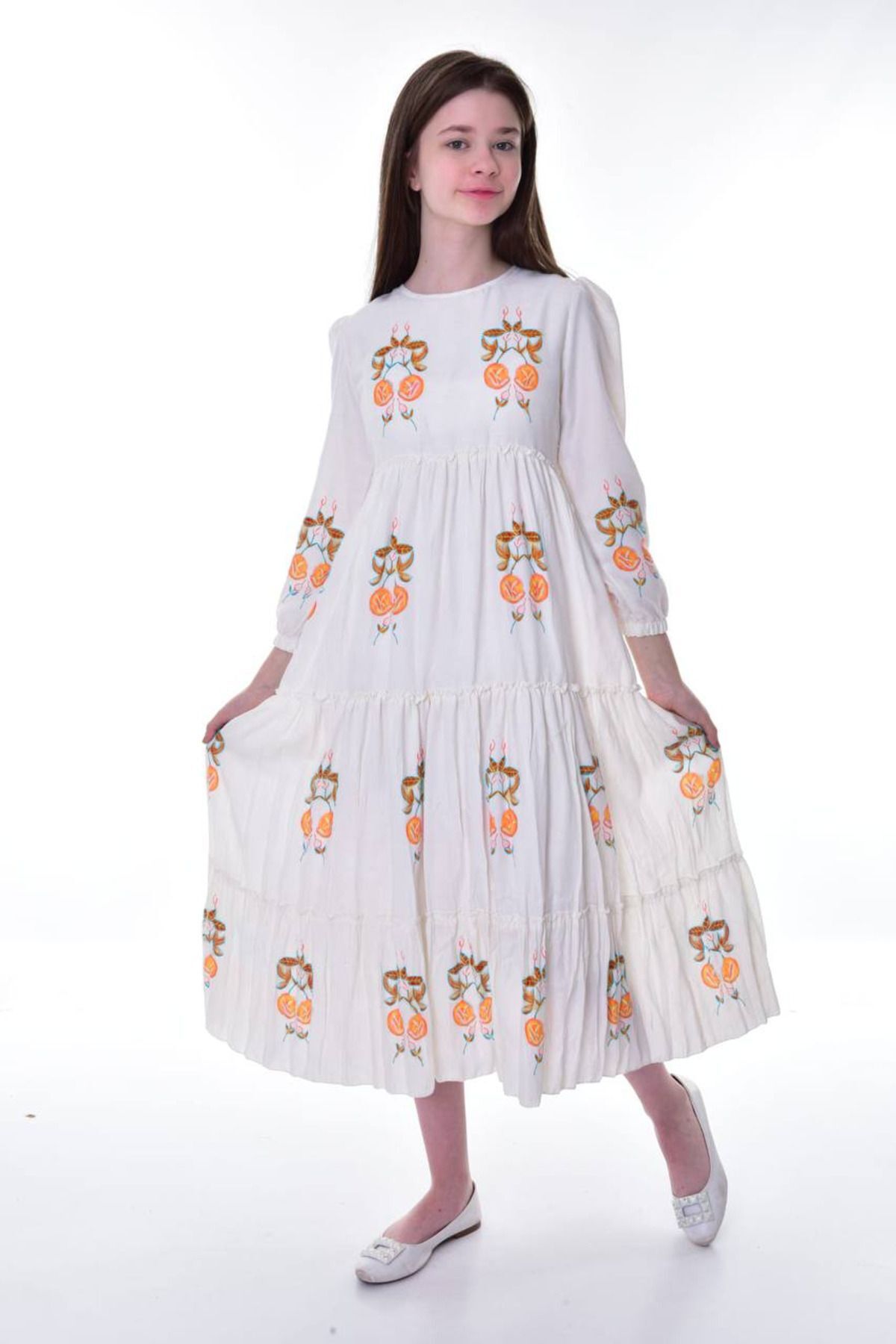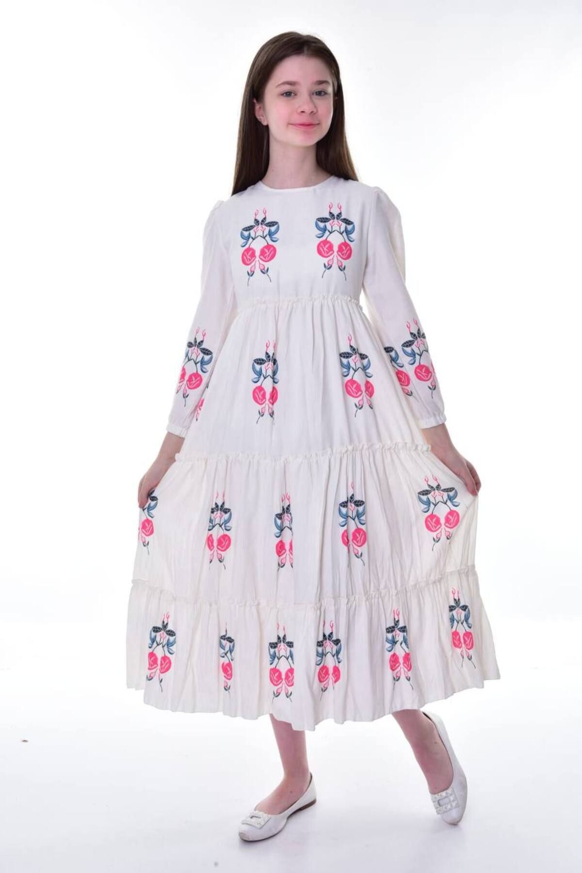 Kız Çocuk Pamuklu Keten Uzun Boydan Astarlı Elbise Kız Çocuk Pamuklu Keten Uzun Boydan Astarlı Elbise ELB-0042 15-16 Yaş