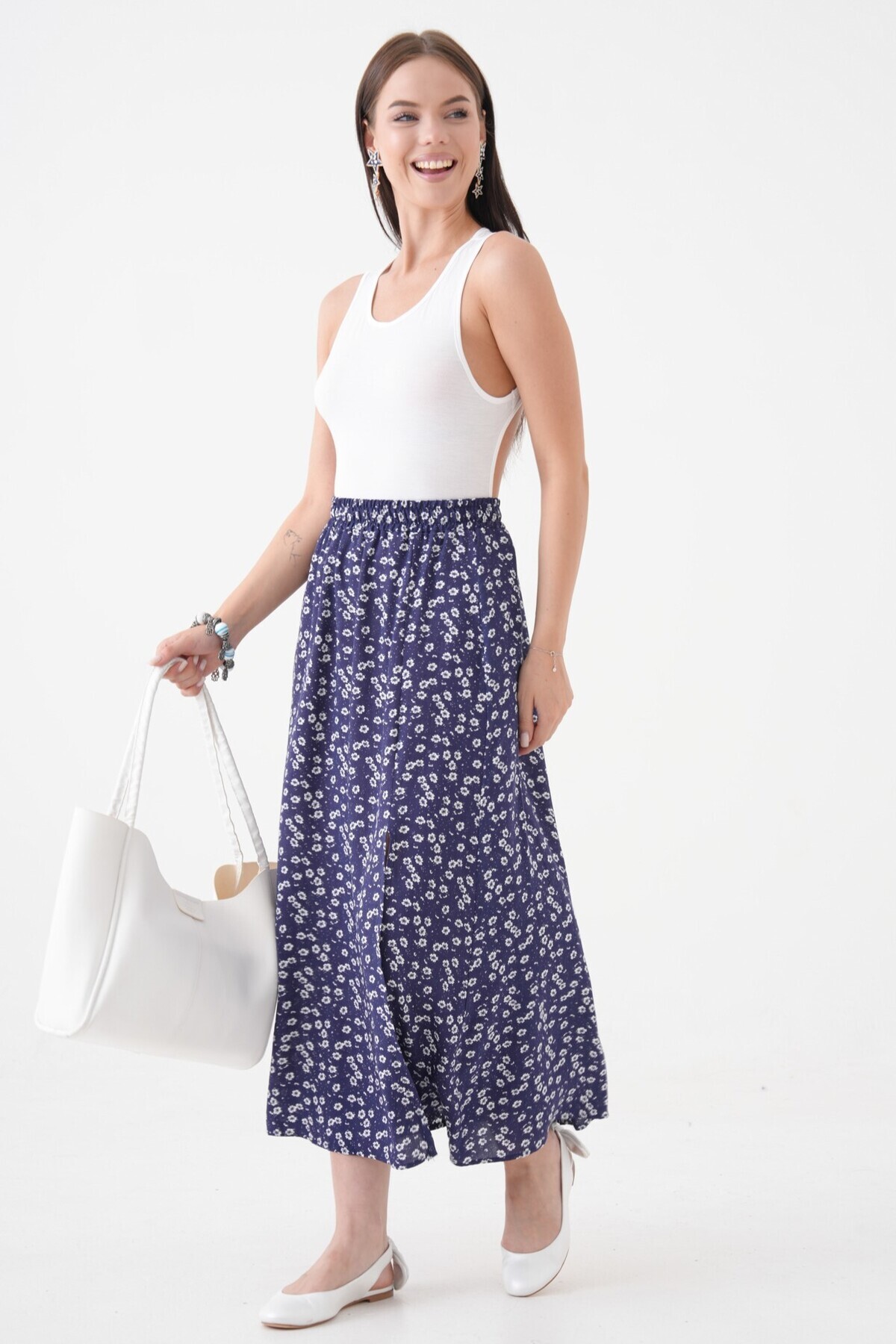 Renkli Çiçekli Viskon Etek Renkli Çiçekli Viskon Etek NF2187 Standart