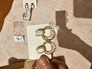Beyaz Taşlı Gold Halka Küpe Beyaz Taşlı Gold Halka Küpe 8C229 تک سایز
