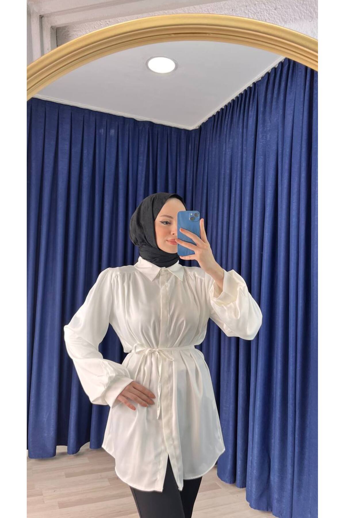 Saten Bağcıklı Siyah Tunik Bluz Saten Bağcıklı Siyah Tunik Bluz TT-1003-Tunik XL