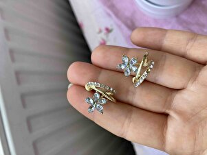Kristal Taşlı Çiçek Küpe Kristal Taşlı Çiçek Küpe 8C253 تک سایز