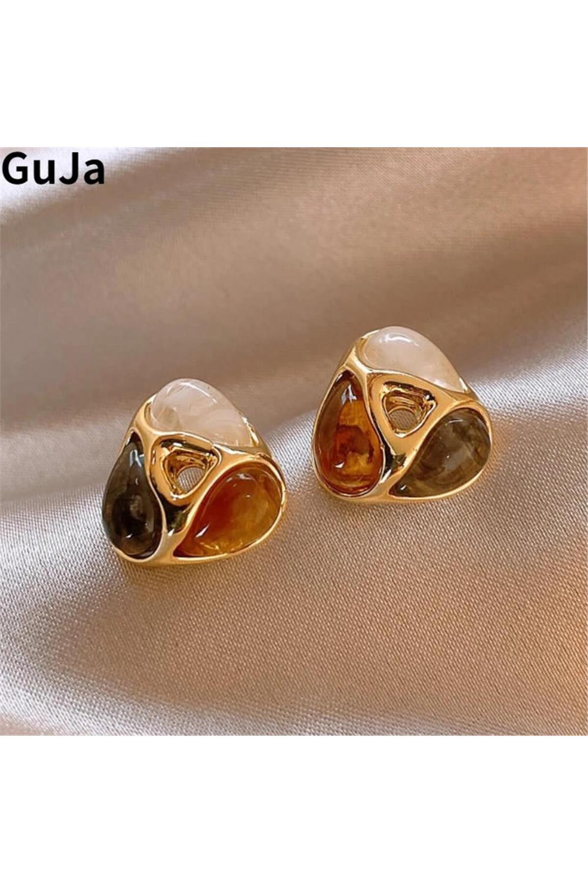 Haki Kahverengi ve Bej Taşlı Vintage Küpe Haki Kahverengi ve Bej Taşlı Vintage Küpe 8C151 تک سایز