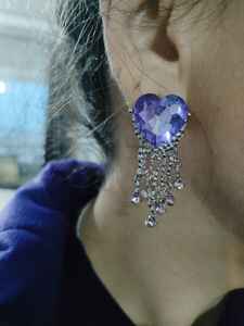 Mor Kalp ve Pembe Taş Sallantılı Küpe Mor Kalp ve Pembe Taş Sallantılı Küpe 8C146 تک سایز