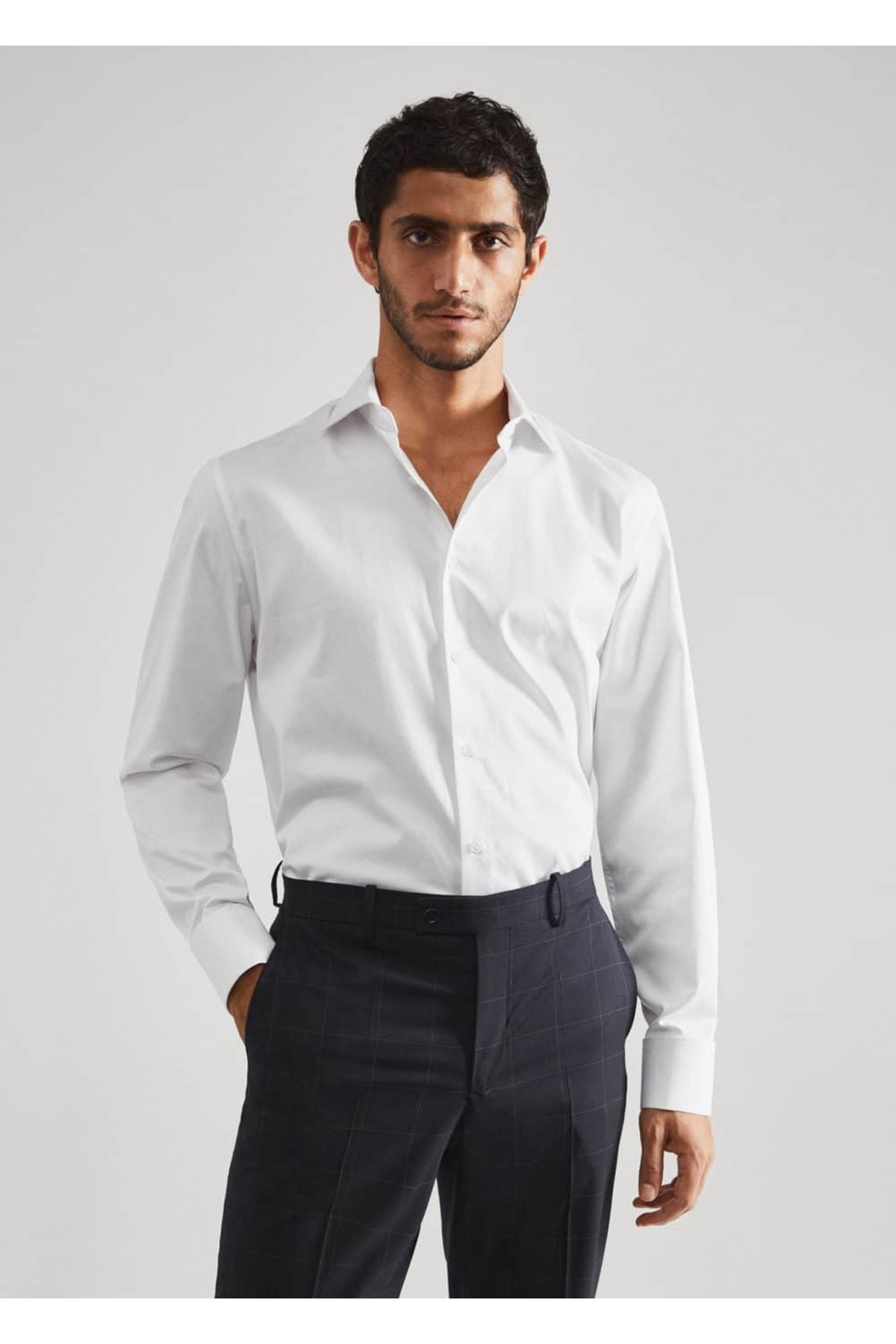 Slim fit yapılı pamuklu gömlek Slim fit yapılı pamuklu gömlek 77030573 2XL
