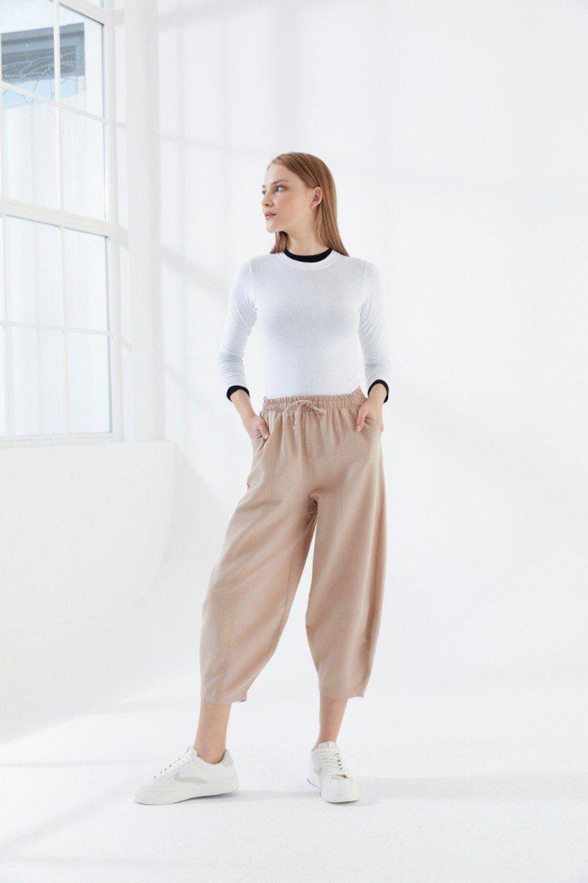 Kadın Trousers Beli Lastikli Aerobin Havuç Pantolon Puane 18102 Kadın Trousers Beli Lastikli Aerobin Havuç Pantolon Puane 18102 44