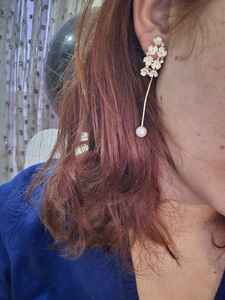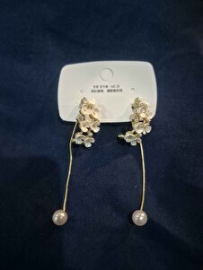 Beyaz Çiçek İşlemeli İnci Sallantılı Küpe Beyaz Çiçek İşlemeli İnci Sallantılı Küpe 8C259 تک سایز