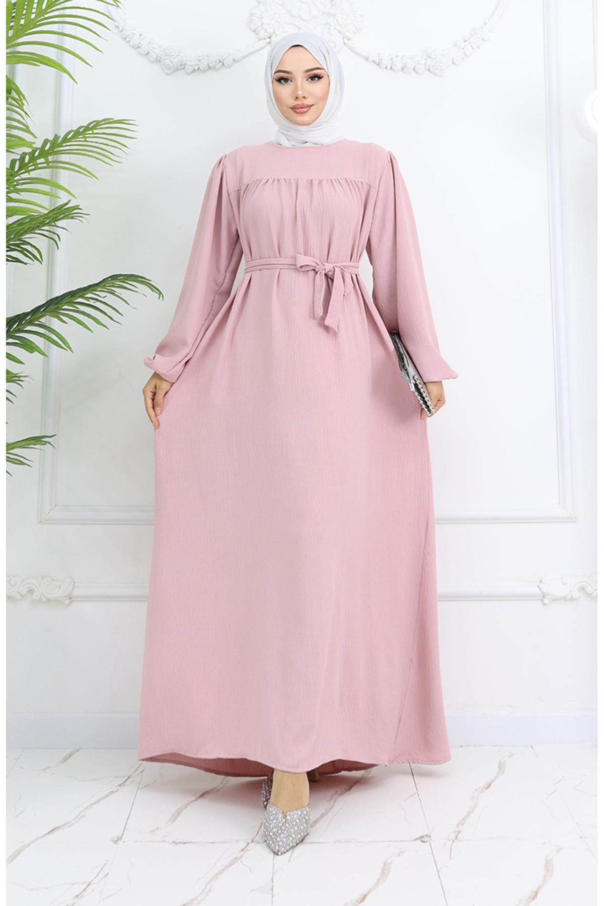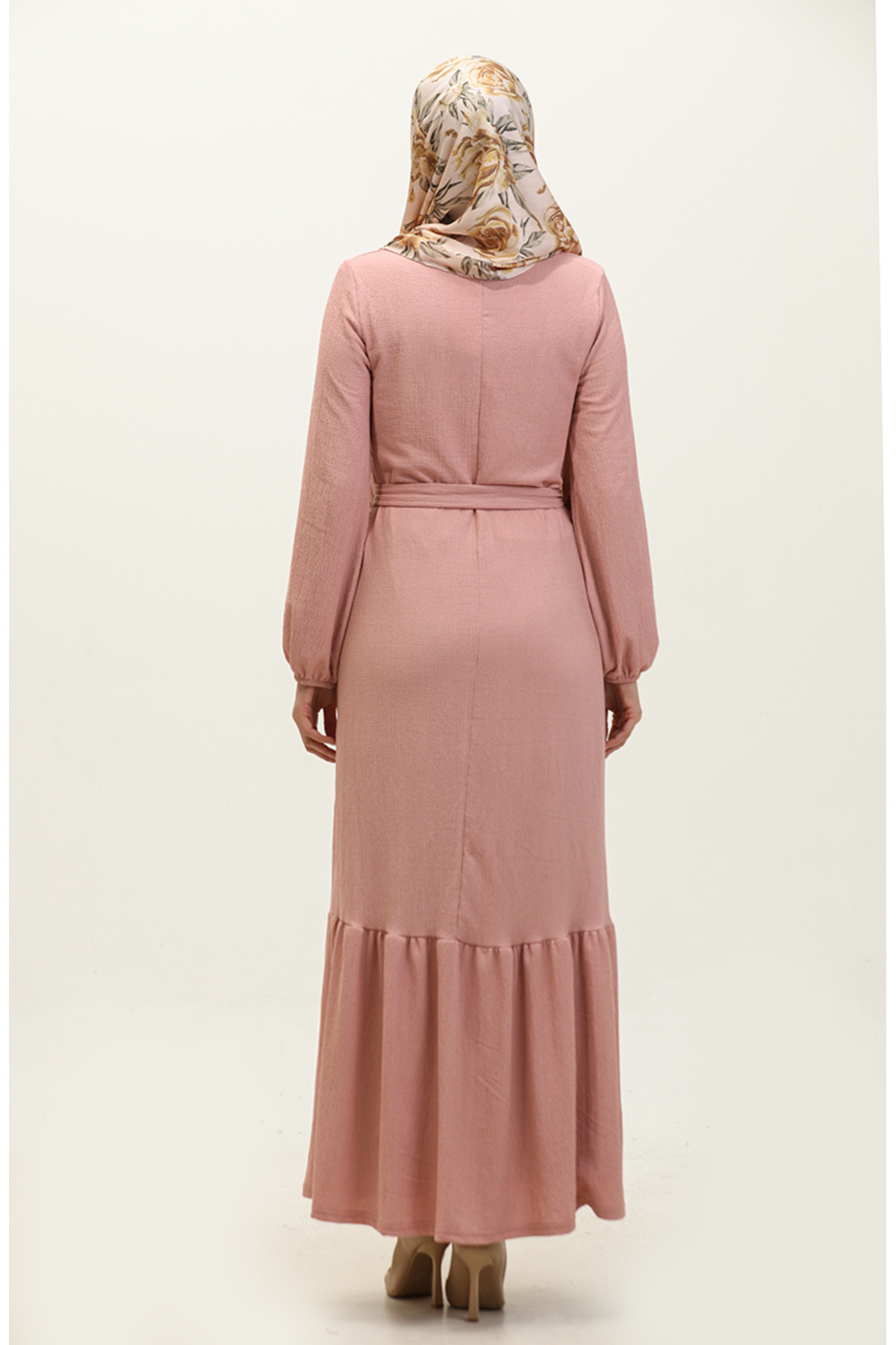 Etek Ucu Büzgülü Kuşaklı Elbise 0202DA-04 Pudra Etek Ucu Büzgülü Kuşaklı Elbise 0202DA-04 Pudra DLBR0202DA-04 48
