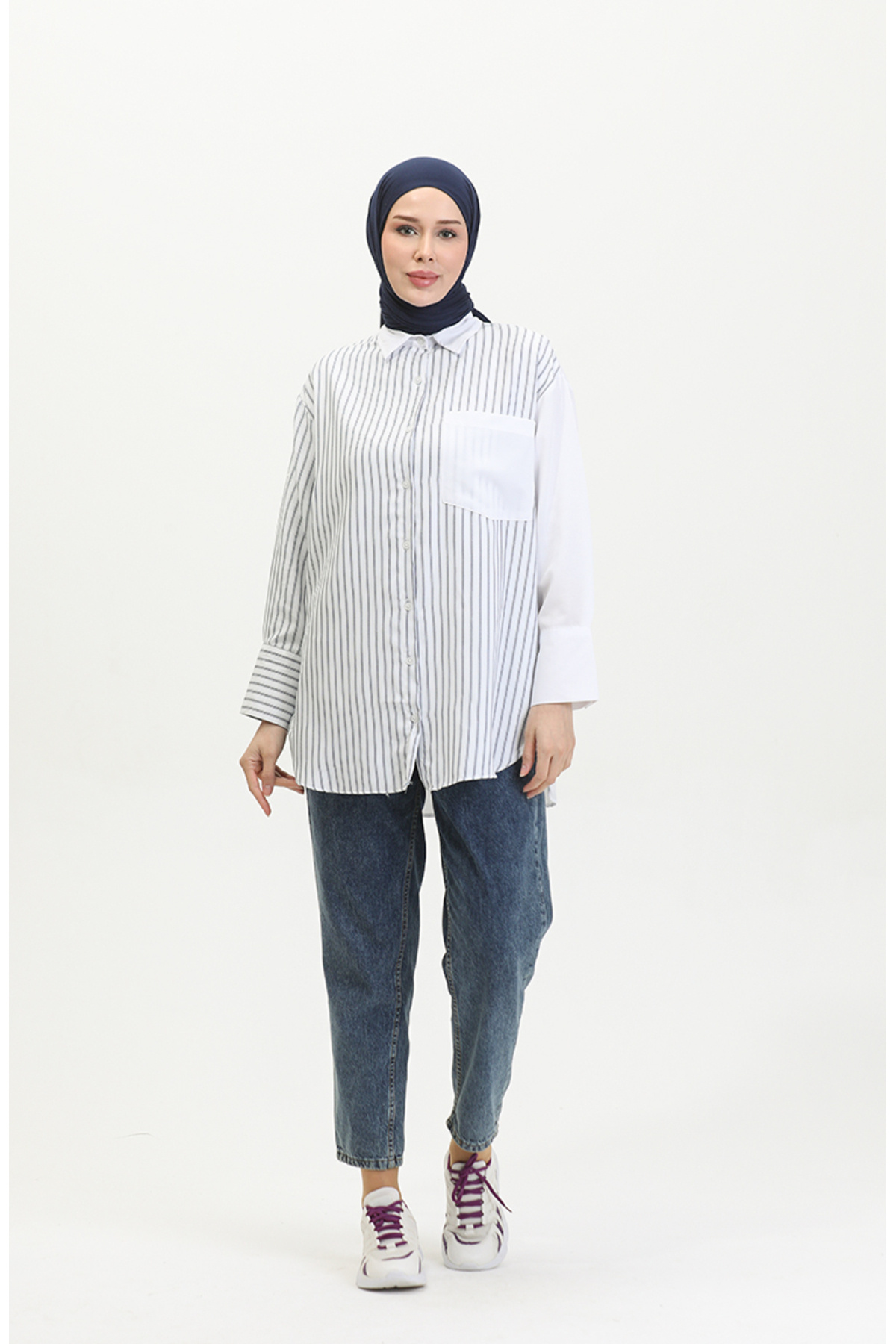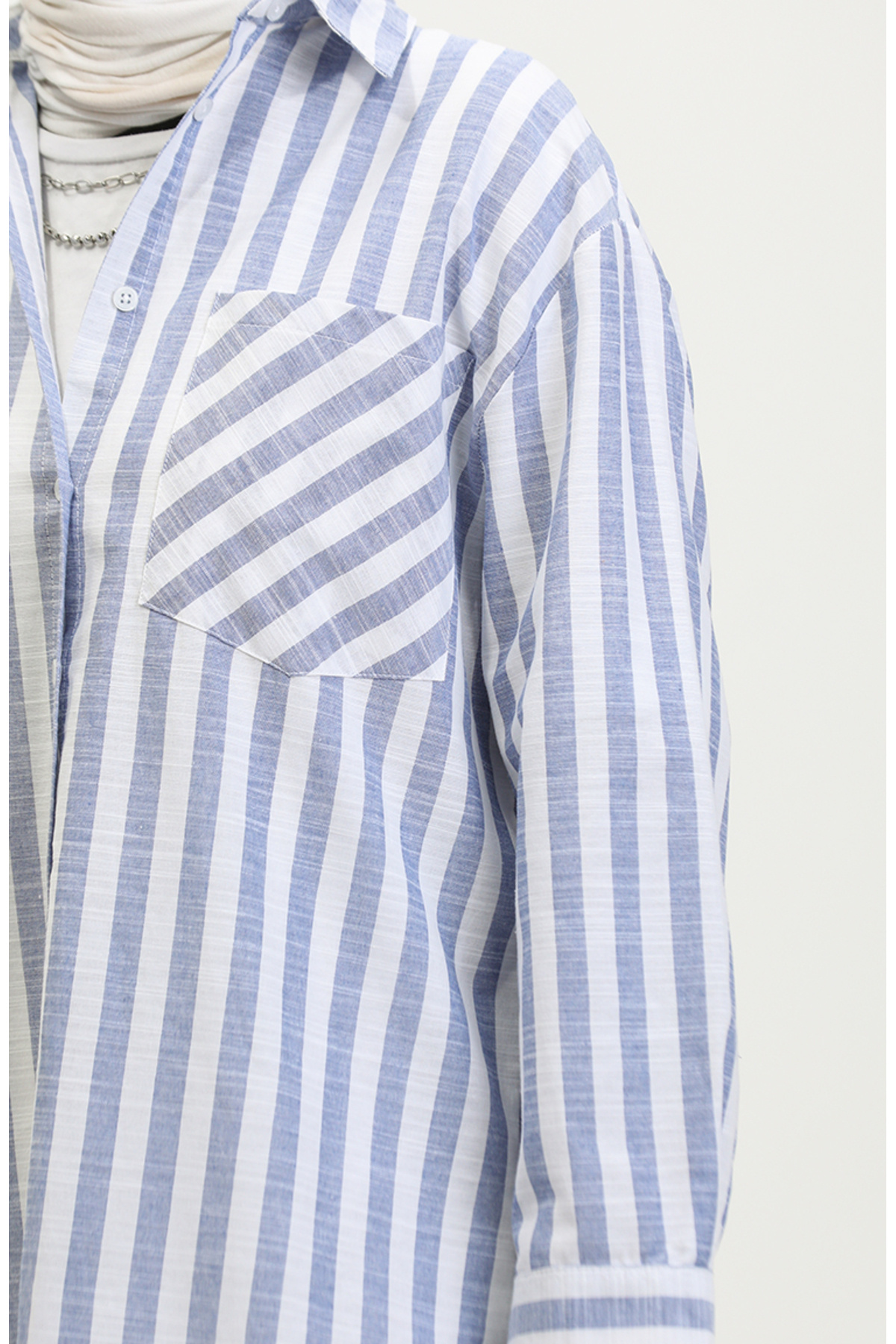 Keten Karışımlı Çizgili Gömlek 4817-01 İndigo Keten Karışımlı Çizgili Gömlek 4817-01 İndigo WBTNK4817-01 48