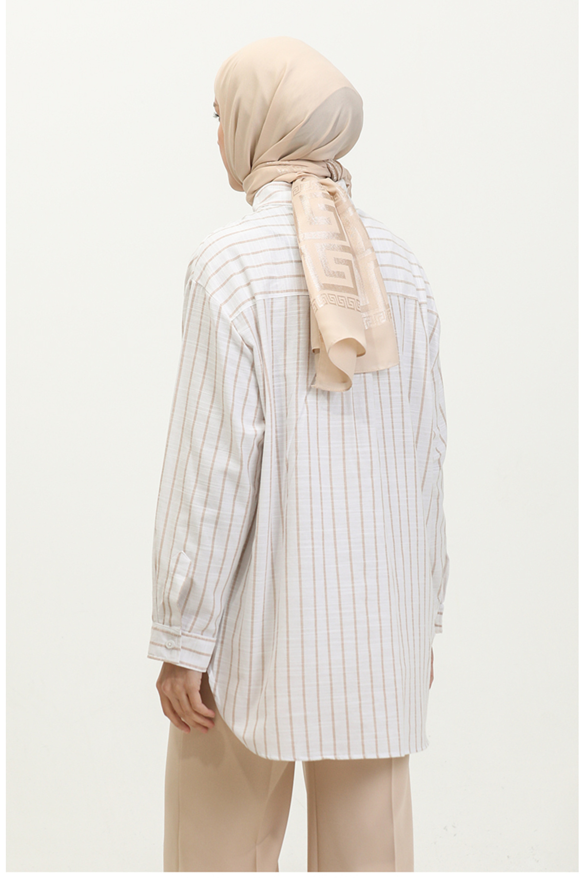 Keten Karışımlı Çizgili Gömlek 4818-03 Vizon Keten Karışımlı Çizgili Gömlek 4818-03 Vizon WBTNK4818-03 48