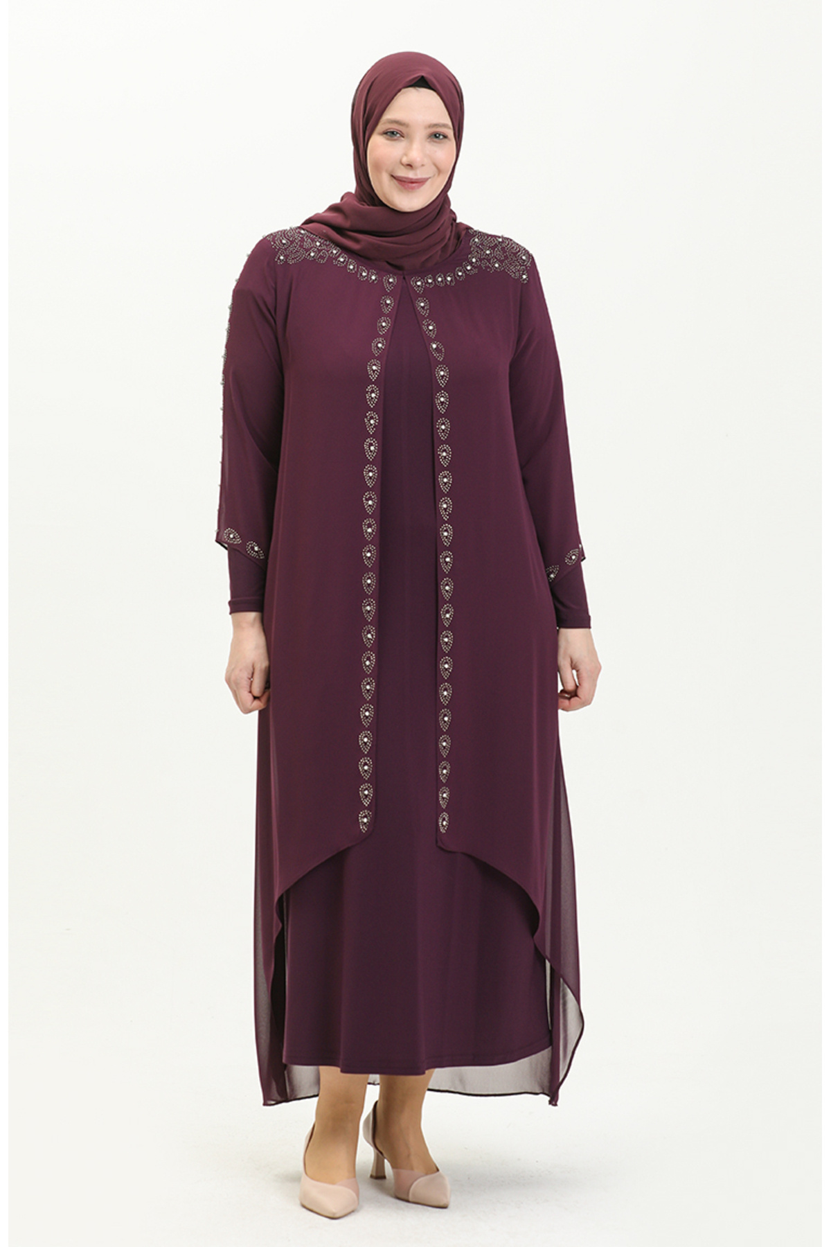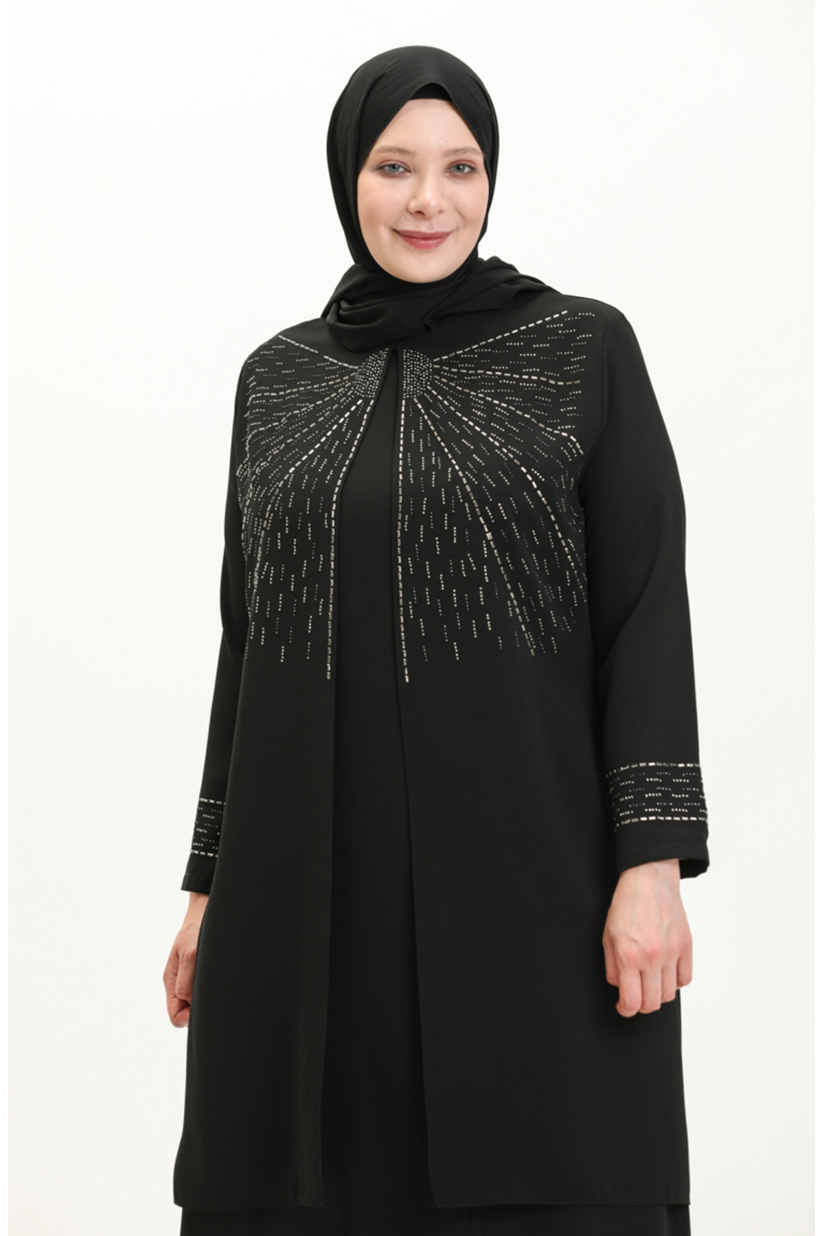 Büyük Beden Taş Baskılı Abiye Elbise 6101-04 Siyah Büyük Beden Taş Baskılı Abiye Elbise 6101-04 Siyah SAMARA6101-04 58