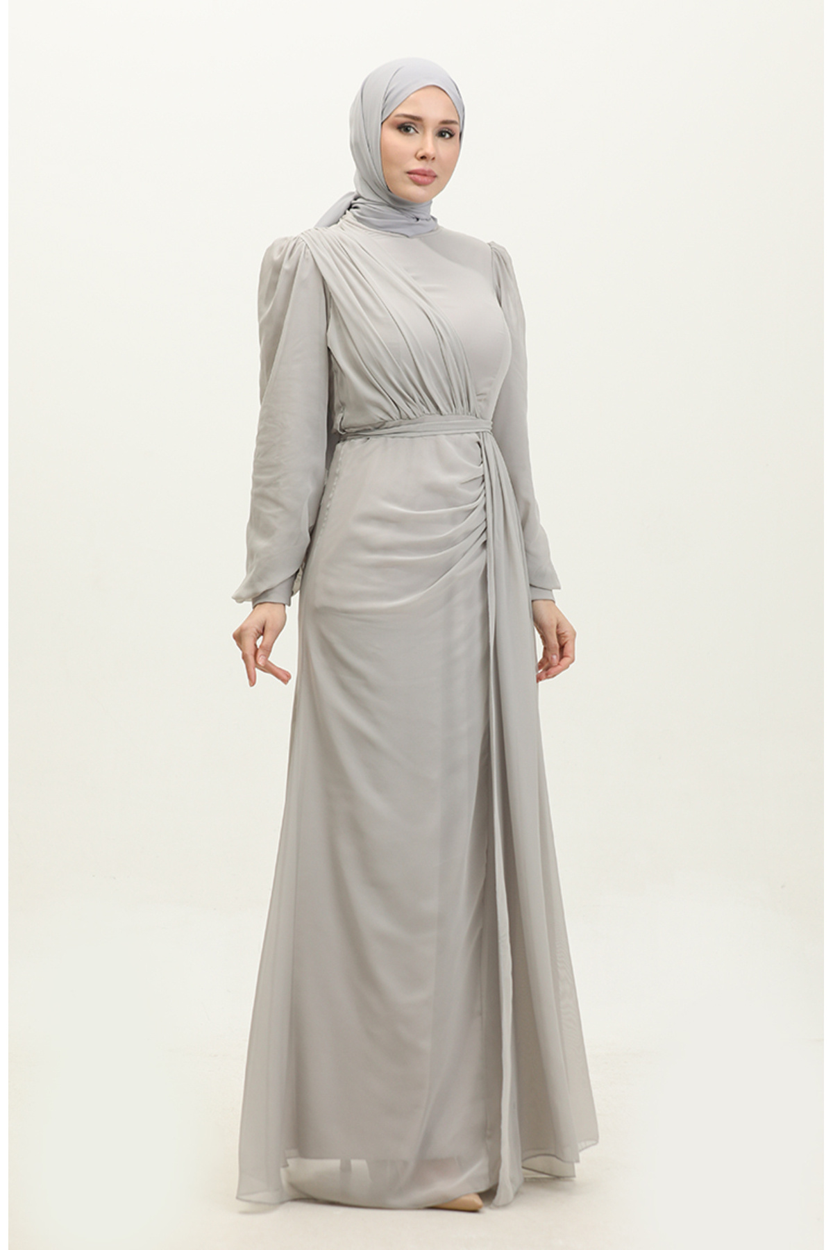 Pileli Kuşaklı Abiye Elbise 5711A-13 Gri Pileli Kuşaklı Abiye Elbise 5711A-13 Gri ZRF5711A-13 52