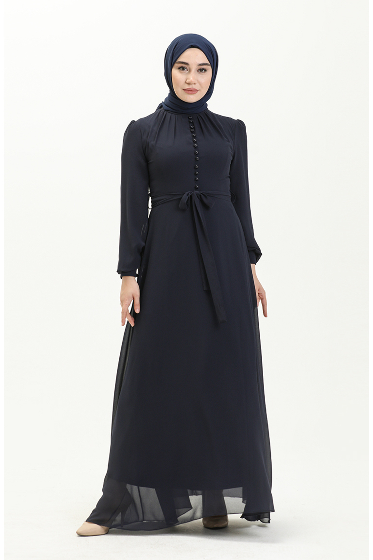 Kuşaklı Saten Abiye Elbise 5758-01 Lacivert Kuşaklı Saten Abiye Elbise 5758-01 Lacivert ZRF5758-01 52