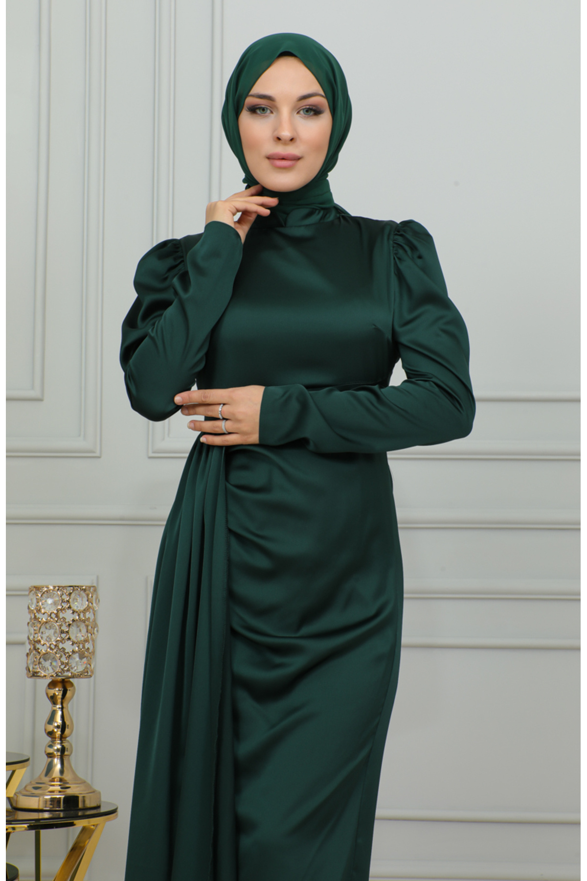 Pile Detaylı Saten Abiye Elbise 6154-05 Zümrüt Yeşili Pile Detaylı Saten Abiye Elbise 6154-05 Zümrüt Yeşili ZRF6154-05 52