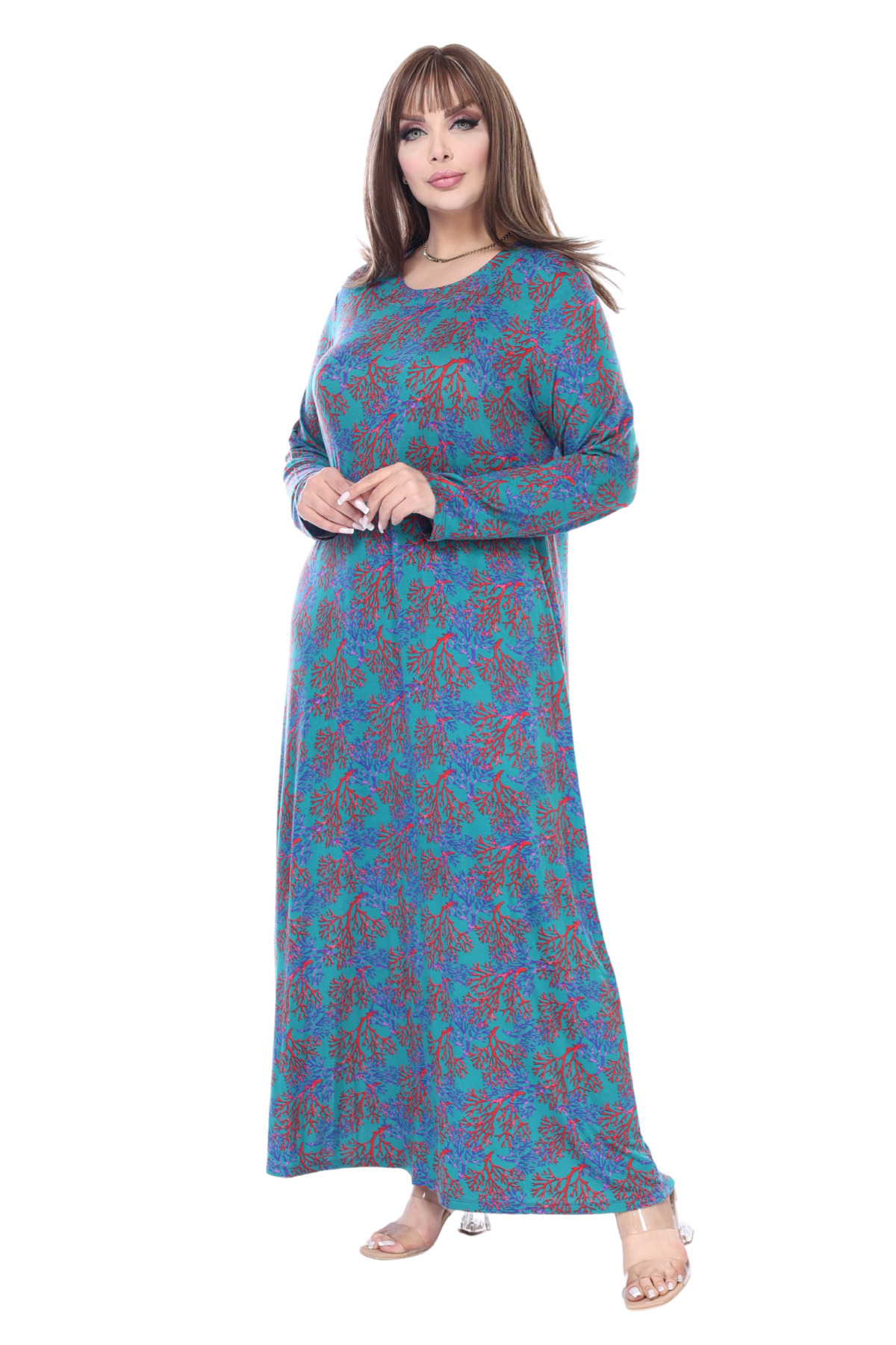 Kadın Büyük Beden Mavi Ince Mercan Desen Uzun Kol Tesettür Elbise Kadın Büyük Beden Mavi Ince Mercan Desen Uzun Kol Tesettür Elbise PRVZ-MRCN 52-54