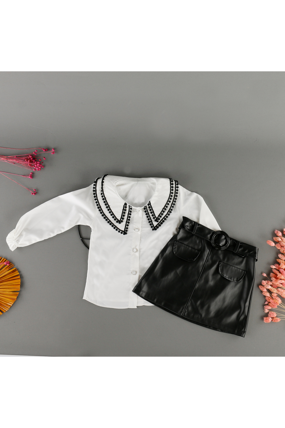 KIZ ÇOCUK DERİ ETEK BANDANA VE KROP TAKIMI KIZ ÇOCUK DERİ ETEK BANDANA VE KROP TAKIMI DERİ-123 4-5 Yaş