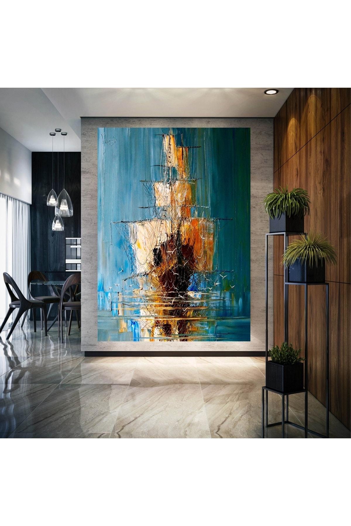 Kanvas Tablo Deniz Gemi Gün Batımı ve Pastel Boyalı Desenli Modern Tablo Kanvas Tablo Deniz Gemi Gün Batımı ve Pastel Boyalı Desenli Modern Tablo tablovip2425 70 x 100