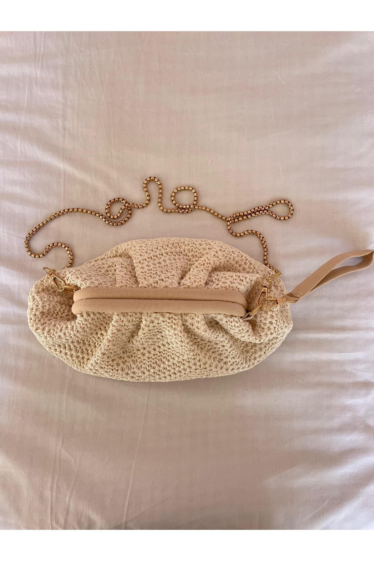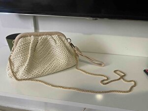 Kadın Krem Örme Burslu El Ve Omuz Çantası Kadın Krem Örme Burslu El Ve Omuz Çantası BRSKR تک سایز