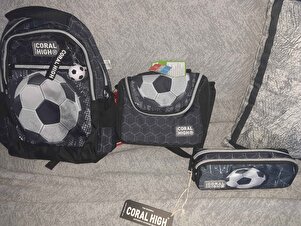 Erkek Çocuk Üç Gözlü İlkokul Çanta Seti - Siyah Futbol Desenli Erkek Çocuk Üç Gözlü İlkokul Çanta Seti - Siyah Futbol Desenli PZM1843 تک سایز