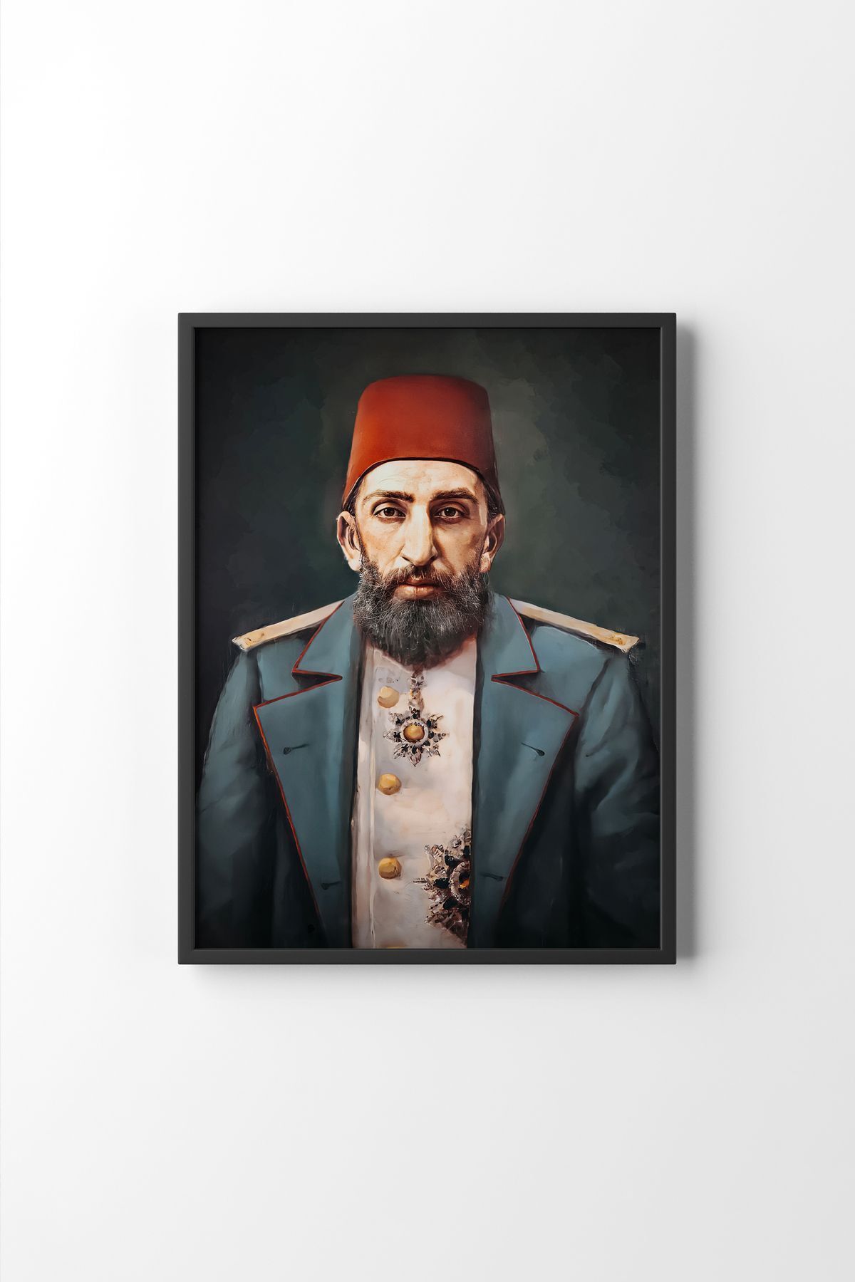 Fatih Sultan Mehmet Portresi - Ahşap Desenli Çerçeve Fatih Sultan Mehmet Portresi - Ahşap Desenli Çerçeve dstn0152 50 x 70