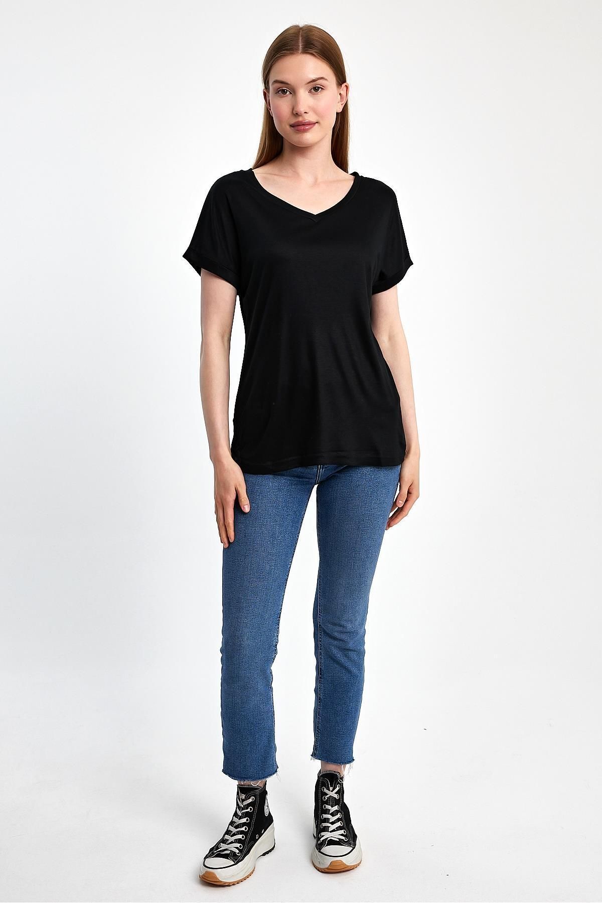 Omzu Vatkalı Zincir Detay Tişört Omzu Vatkalı Zincir Detay Tişört BK221 L