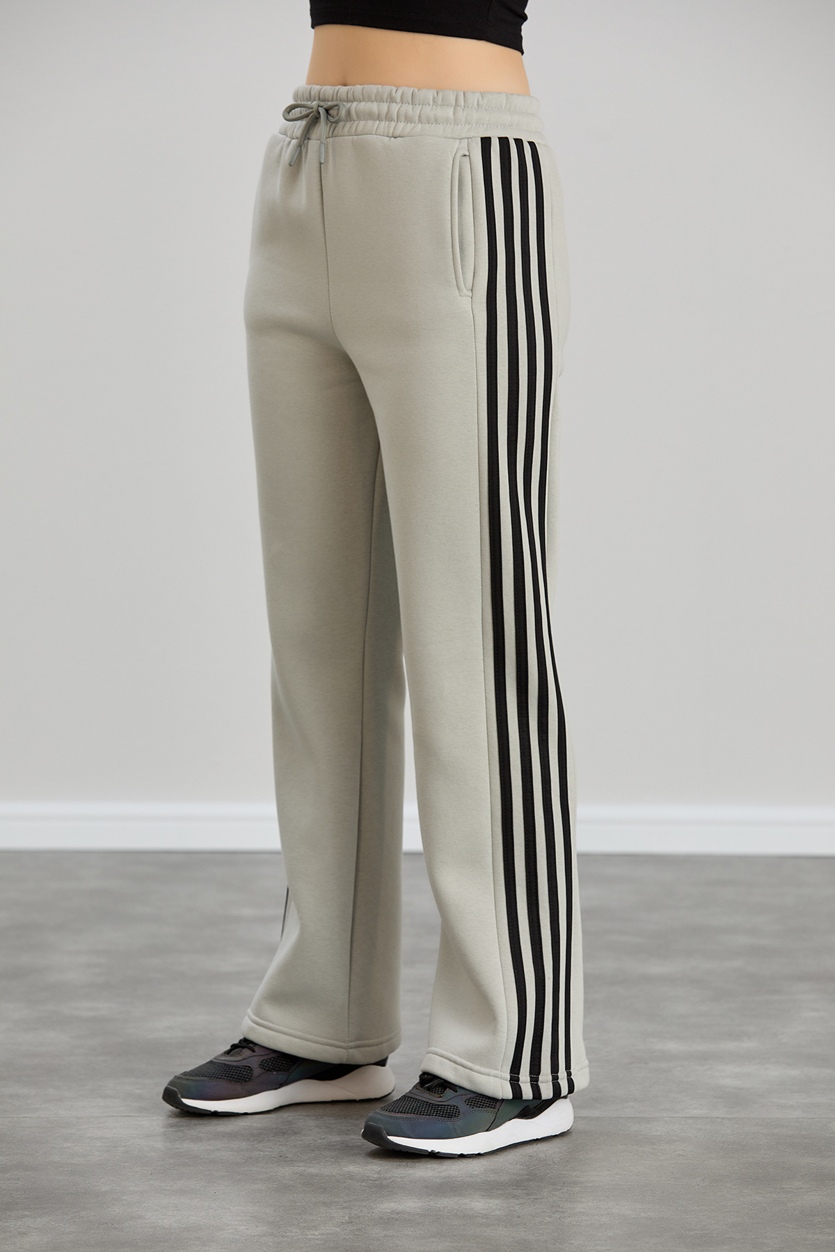 Kadın Gri Beyaz Yüksek Bel Tasarım Cepli Şeritli Bol Paça Üç İplik Eşofman Altı Kadın Gri Beyaz Yüksek Bel Tasarım Cepli Şeritli Bol Paça Üç İplik Eşofman Altı KAL0059 XL