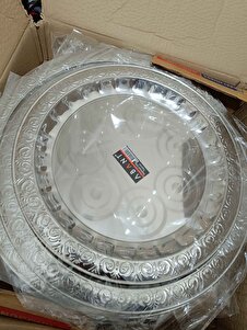 3'lü Paslanmaz Çelik Desenli Yuvarlak Çay Tepsi Kahve Servis Sunum Tepsi 36-40-44 cm 3'lü Paslanmaz Çelik Desenli Yuvarlak Çay Tepsi Kahve Servis Sunum Tepsi 36-40-44 cm PLM3LÜ تک سایز