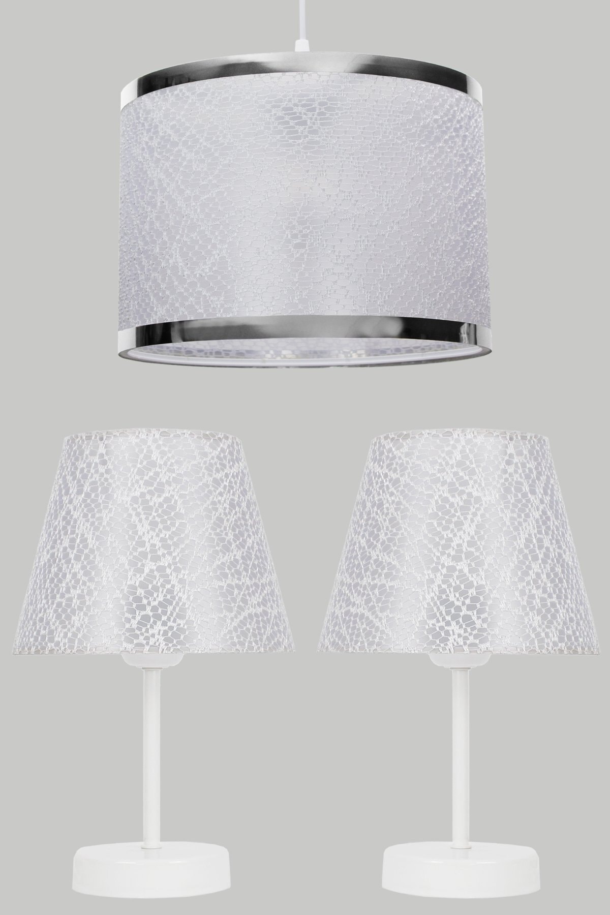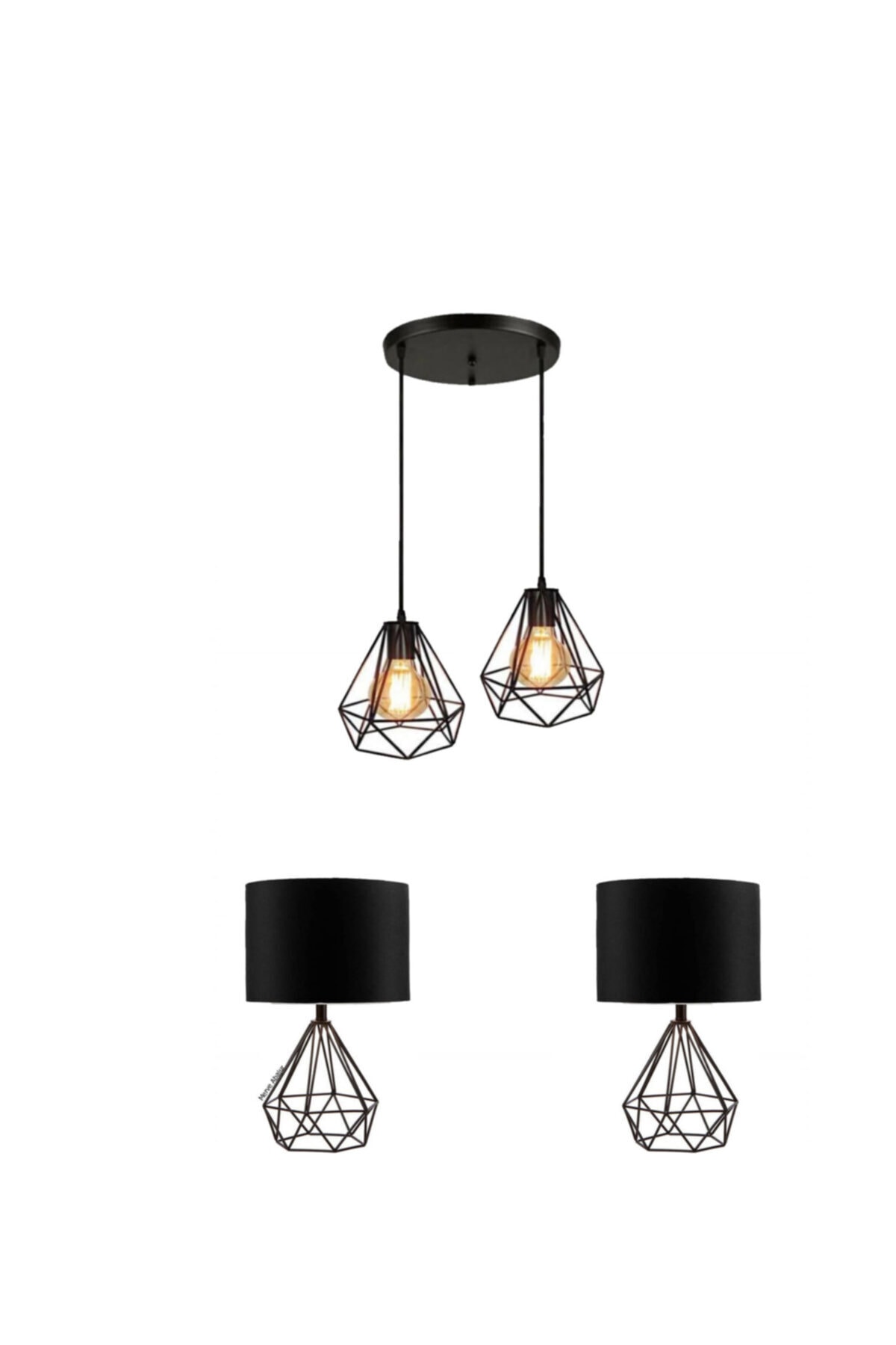 3 Adet Aydınlatma Seti 1 Adet Avize 2 Adet Abajur Kumaş Başlık Metal Ayak 3 Adet Aydınlatma Seti 1 Adet Avize 2 Adet Abajur Kumaş Başlık Metal Ayak damla-3 تک سایز