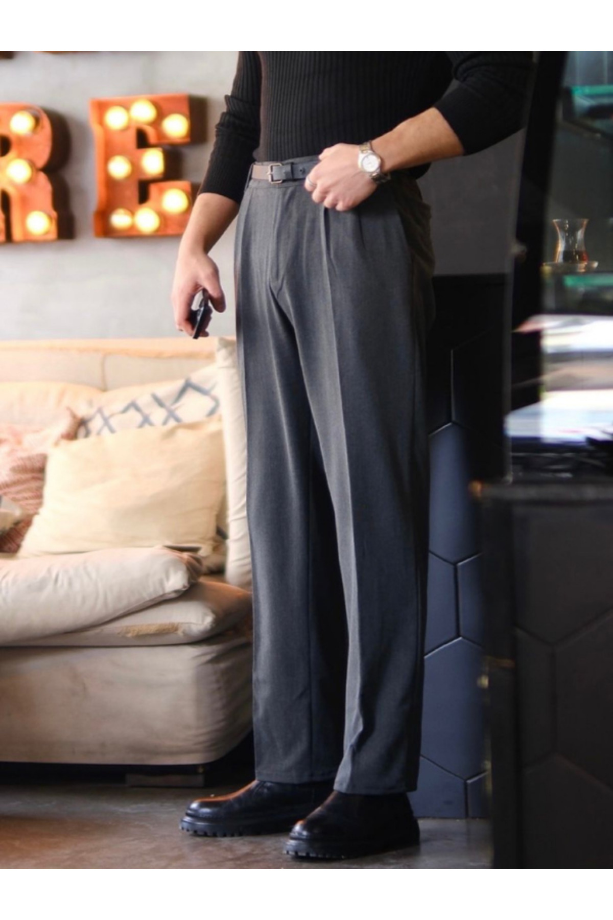 Antrasit Baggy Yüksek Bel Erkek Kumaş Pantolon Antrasit Baggy Yüksek Bel Erkek Kumaş Pantolon A24Y2745 XL