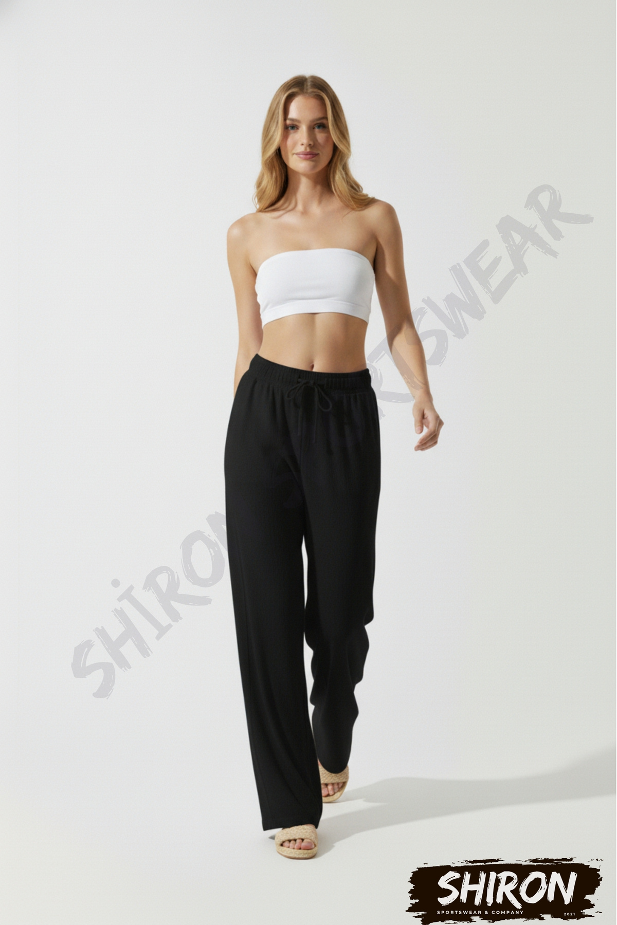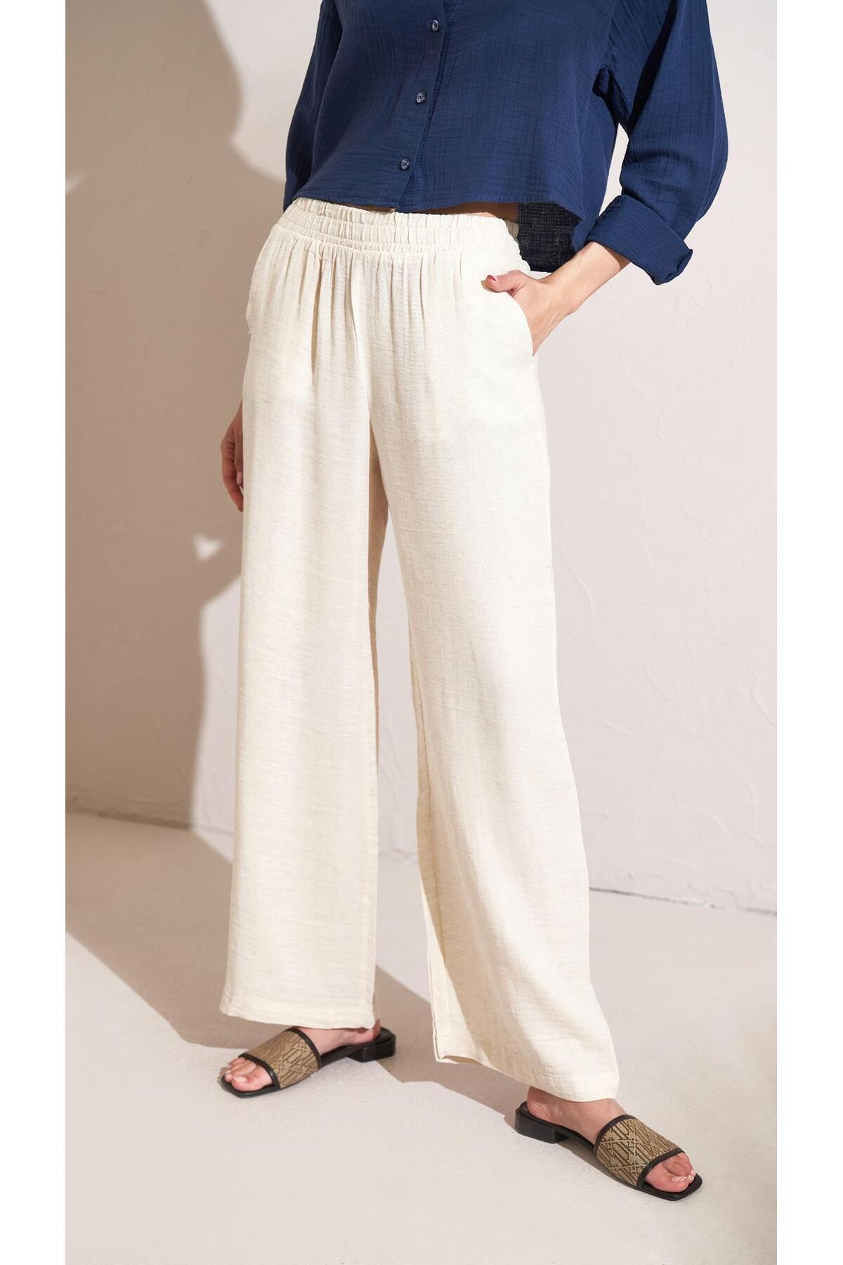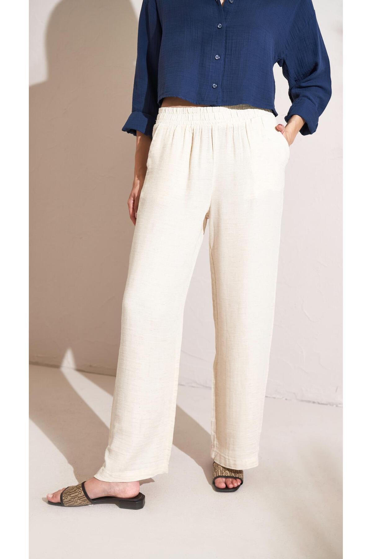 Kadın Taş Müslin Kumaş Beli Lastikli Palazzo Pantolon Kadın Taş Müslin Kumaş Beli Lastikli Palazzo Pantolon 4YKPNT36146 L