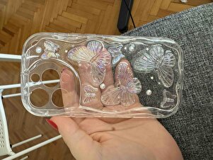 Iphone 15 Pro Uyumlu Kelebek Desenli İnci Taşlı Kamera Koruma Çerçeveli Lux Simli Şeffaf Kılıf Kapak Iphone 15 Pro Uyumlu Kelebek Desenli İnci Taşlı Kamera Koruma Çerçeveli Lux Simli Şeffaf Kılıf Kapak Iphone 15 Pro Kelebek Şeffaf تک سایز