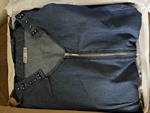 Yakası Taş Aksesuarlı Kot Büyük Beden Elbise Yakası Taş Aksesuarlı Kot Büyük Beden Elbise 314 52