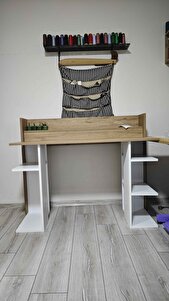 Vader Çalışma Masası Bilgisayar Masası Raflı Sepet-Beyaz VR1-SW Vader Çalışma Masası Bilgisayar Masası Raflı Sepet-Beyaz VR1-SW تک سایز