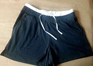 Çift Bel Detaylı Mini Şort Cepli Beli Bağlamalı Rahat Kalıp Pamuklu Çift Bel Detaylı Mini Şort Cepli Beli Bağlamalı Rahat Kalıp Pamuklu 4SAL40139IK XL