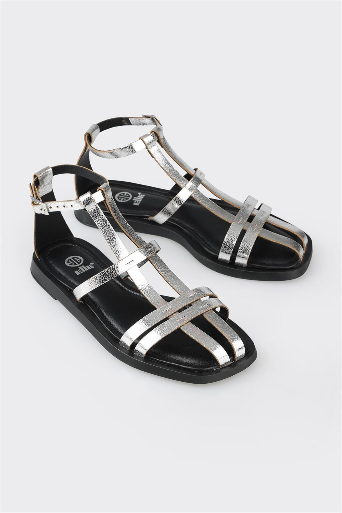 Lame Deri Kadın Düz Sandalet Lame Deri Kadın Düz Sandalet GOLJE 40