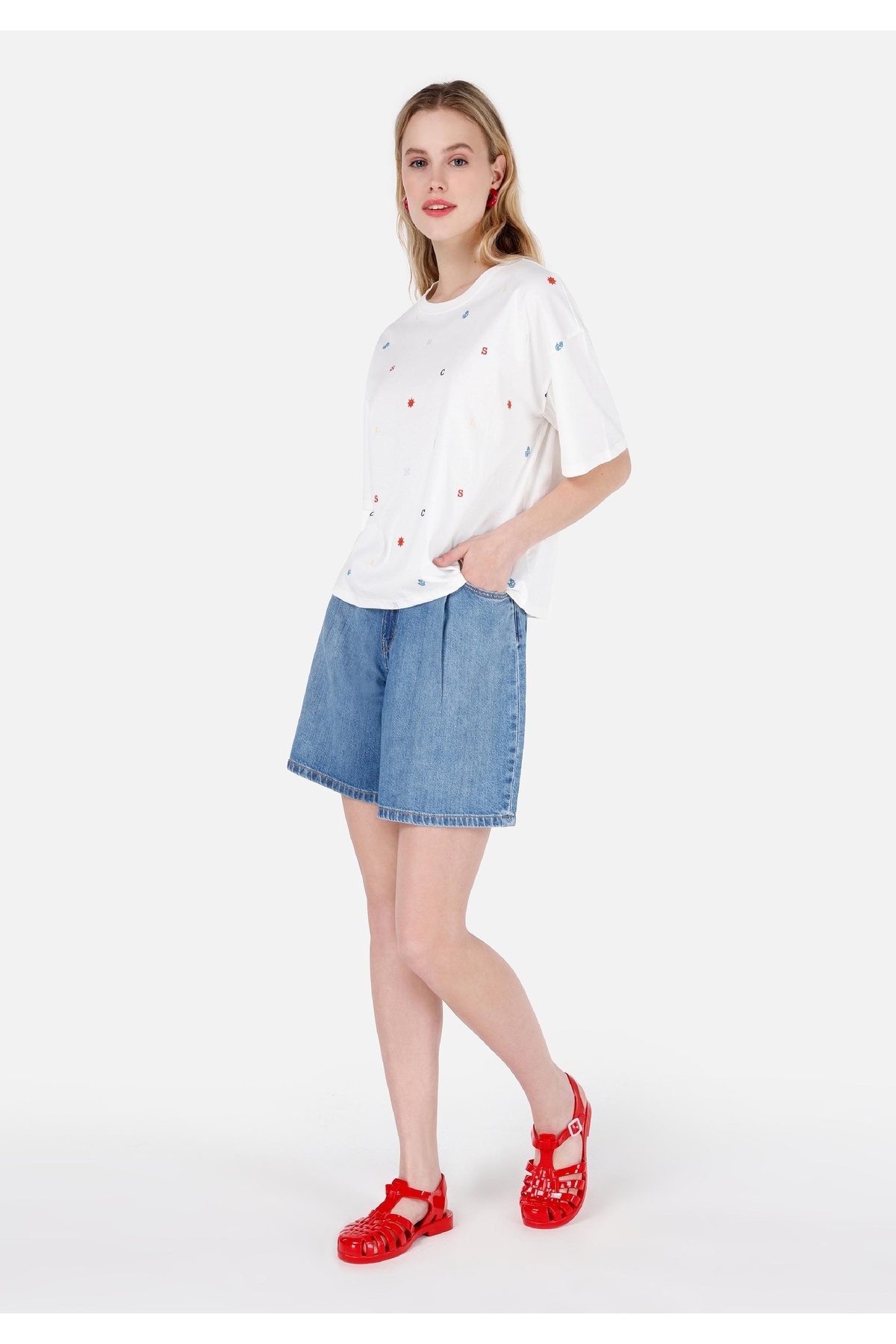 Loose Fit Orta Bel Kadın Mavi Jean Şort Loose Fit Orta Bel Kadın Mavi Jean Şort .CL1068618_Q1.V1_DN43240 40