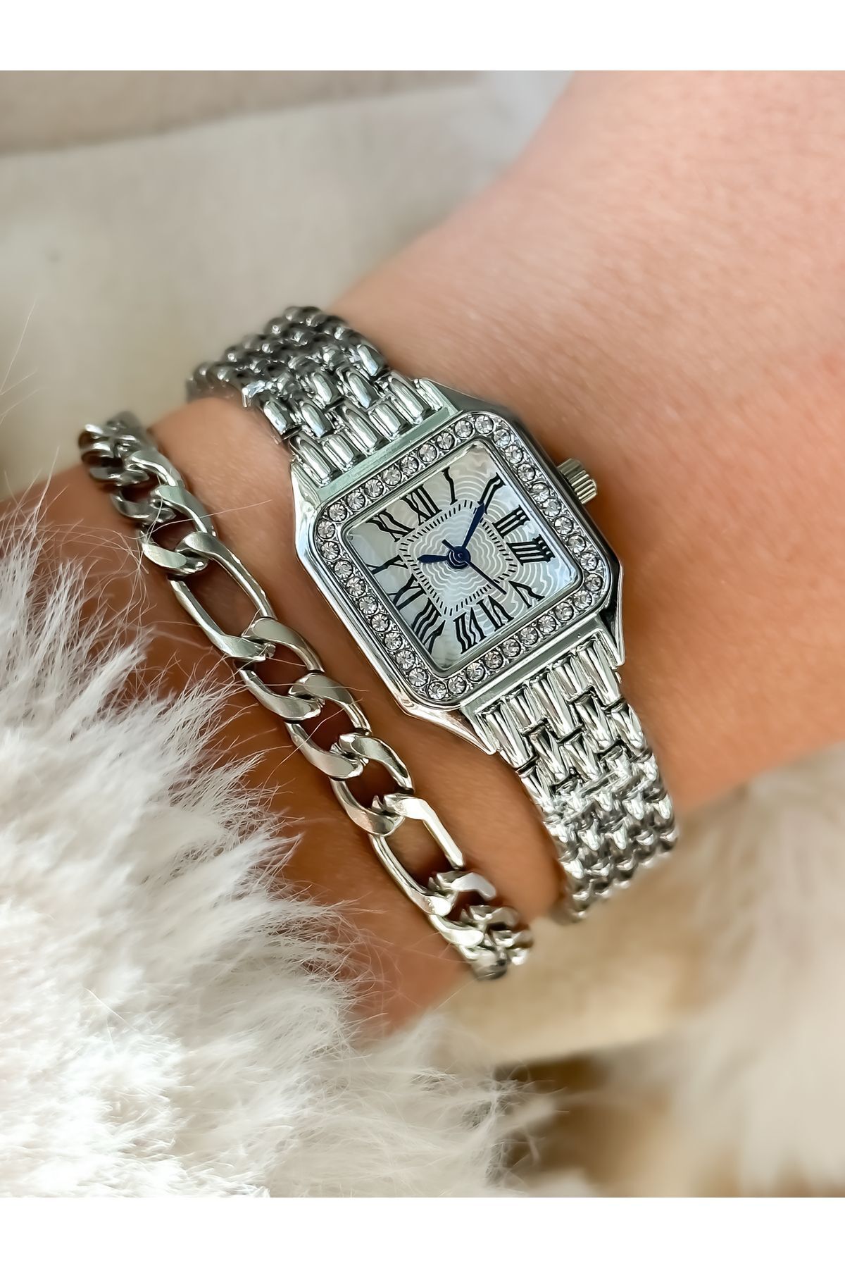 Roma Rakamlı Zirkon Taşlı Kadın Kol Saati Roma Rakamlı Zirkon Taşlı Kadın Kol Saati PLUM007 تک سایز