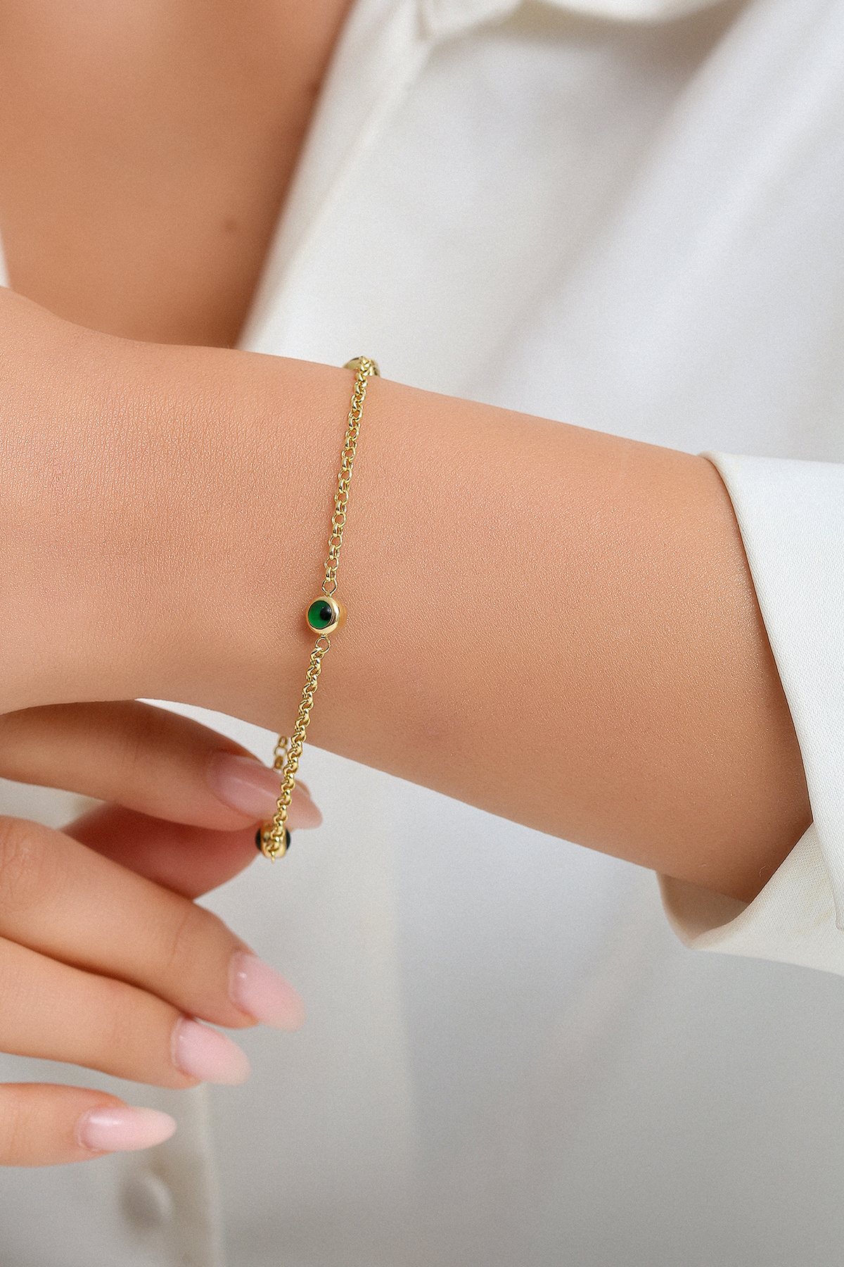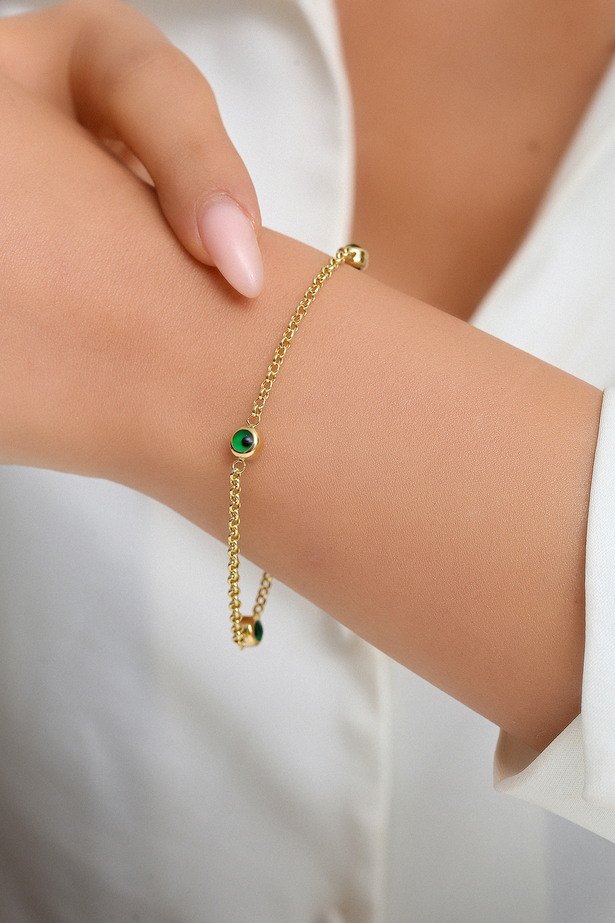 14 Ayar Altın Yeşil Üç Gözlü Bileklik 14 Ayar Altın Yeşil Üç Gözlü Bileklik GKTBLK103 تک سایز