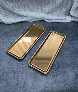 2'li Gold Dikdörtgen çay, kahve, Servis Sunum Tepsisi 2'li Gold Dikdörtgen çay, kahve, Servis Sunum Tepsisi 2libtnaslı تک سایز