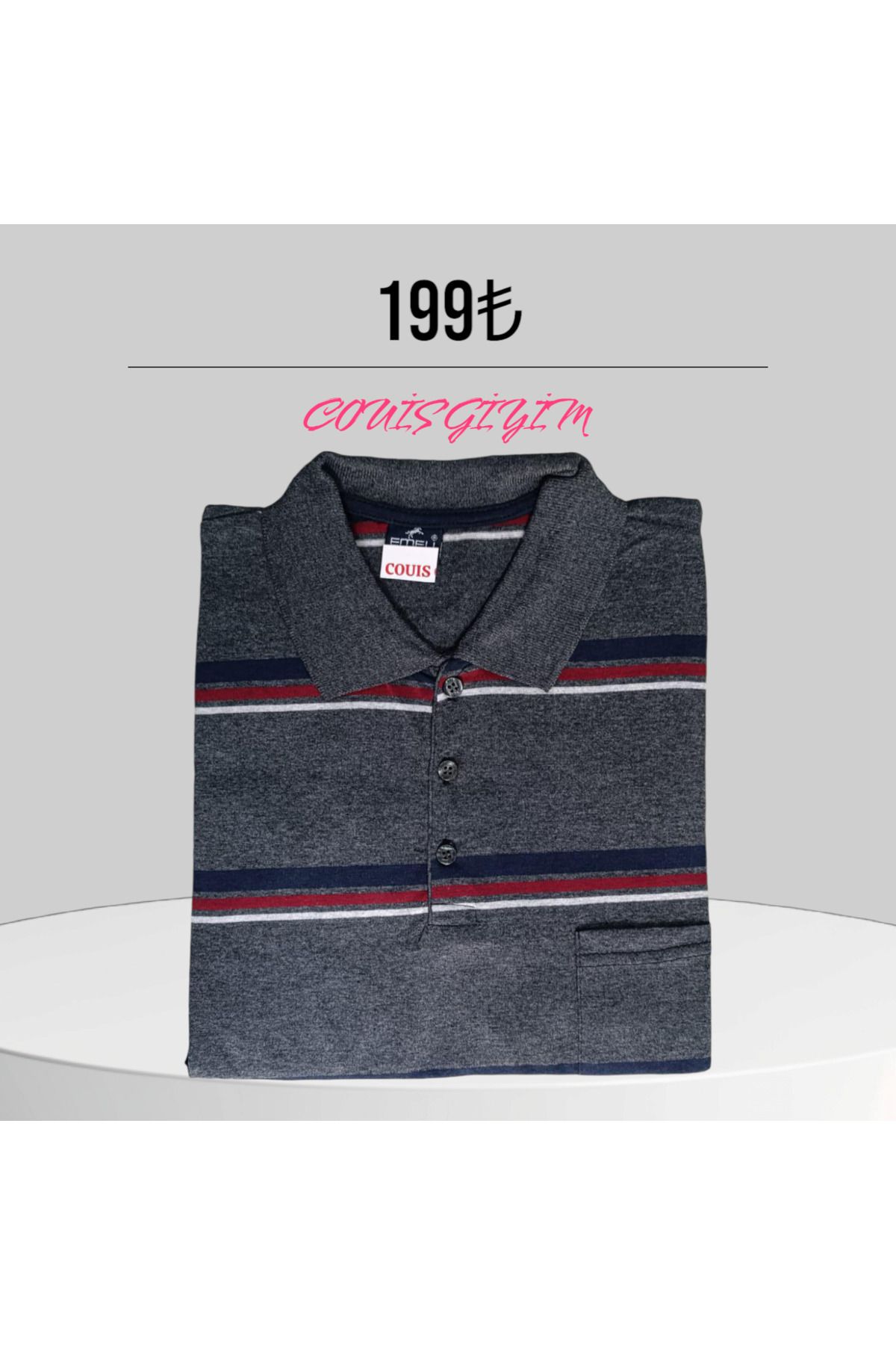 Erkek Comfort Basic Polo Yaka Cepli Uzun Gri Tişört Erkek Comfort Basic Polo Yaka Cepli Uzun Gri Tişört 1492LROM 2XL
