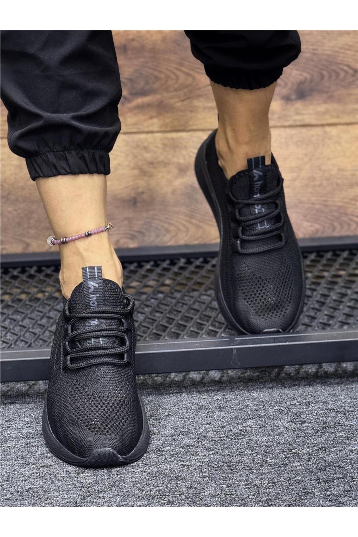Bağcıklı Triko Kadın Spor Ayakkabı-Siyah Bağcıklı Triko Kadın Spor Ayakkabı-Siyah hmr-00507-2024-K 44