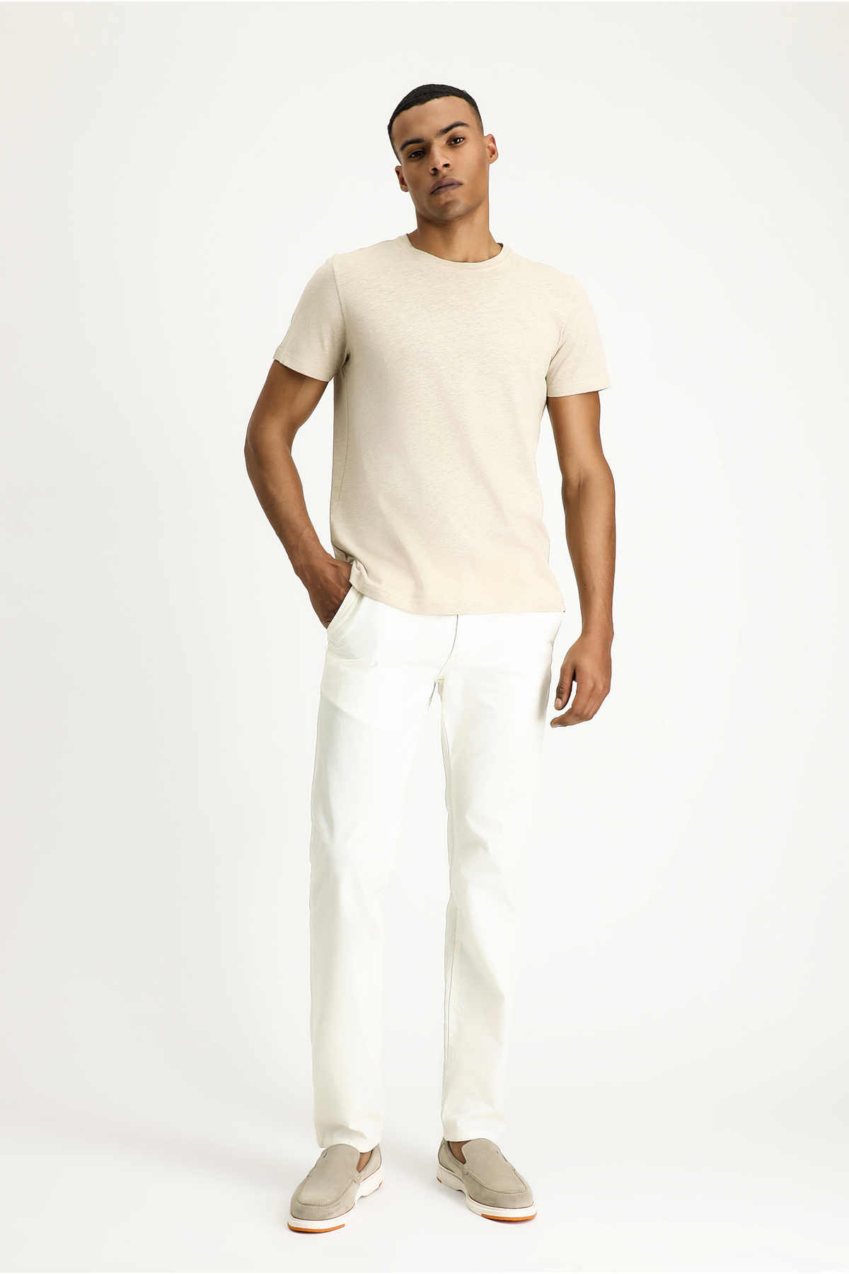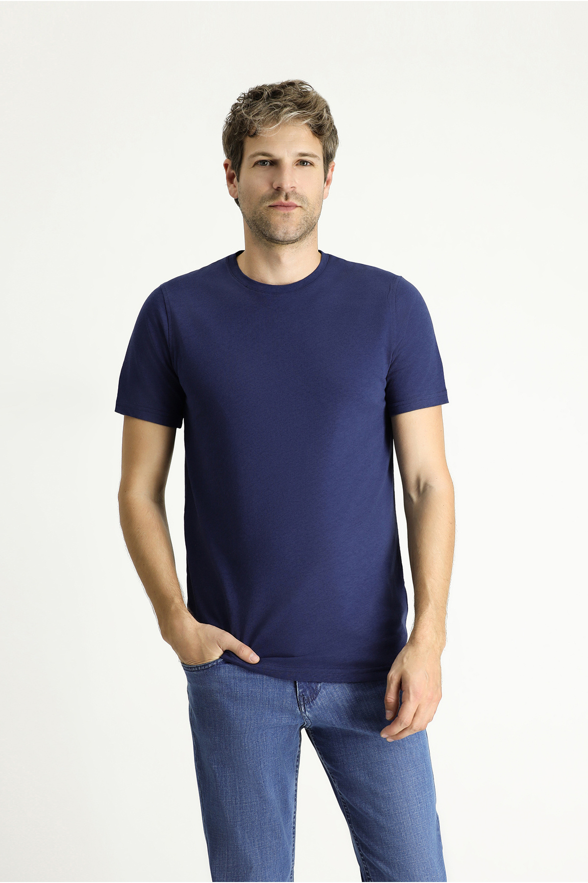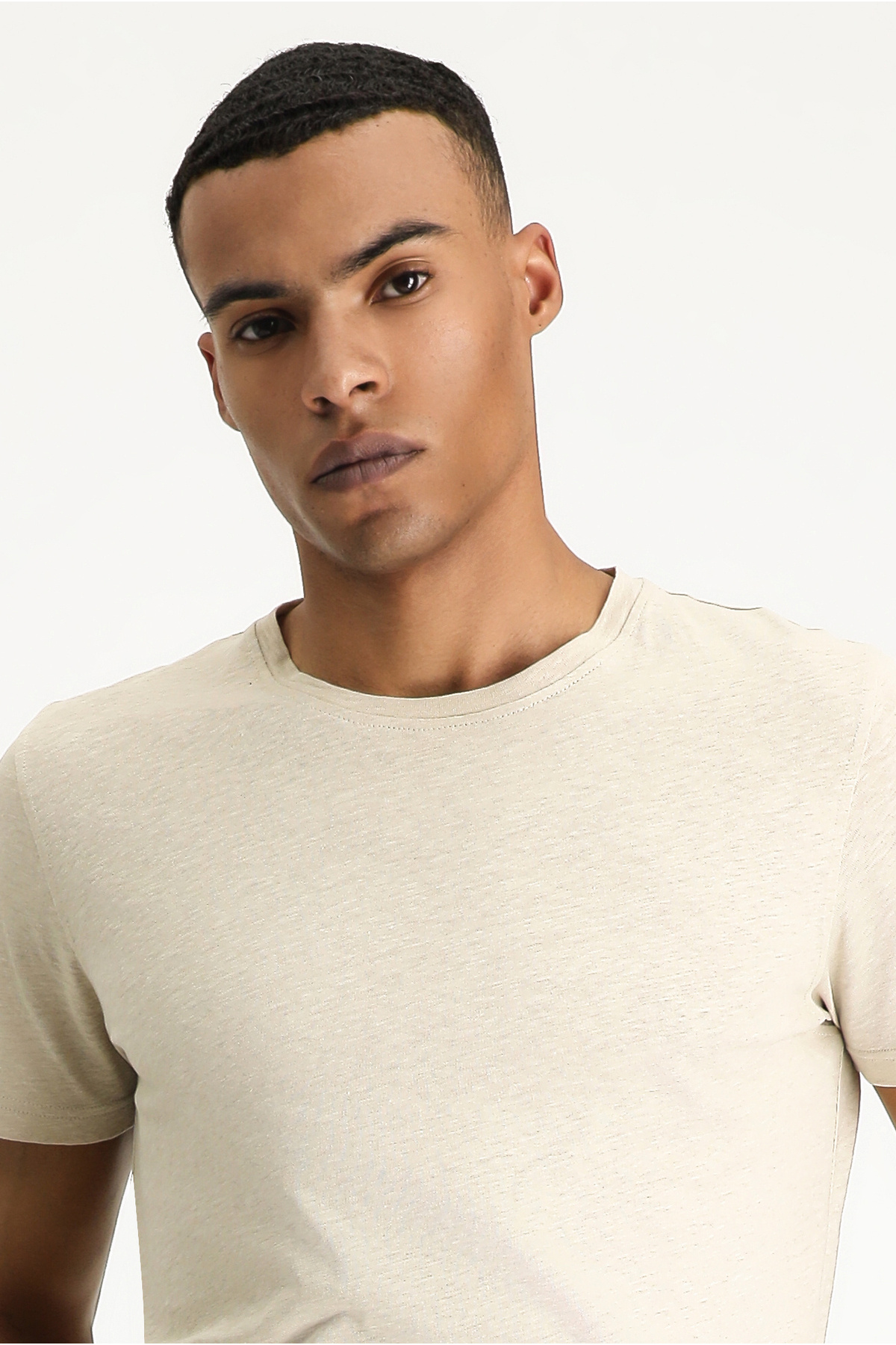 Bisiklet Yaka Slim Fit Dar Kesim Keten Karışımlı Tişört Bisiklet Yaka Slim Fit Dar Kesim Keten Karışımlı Tişört 711128 2XL